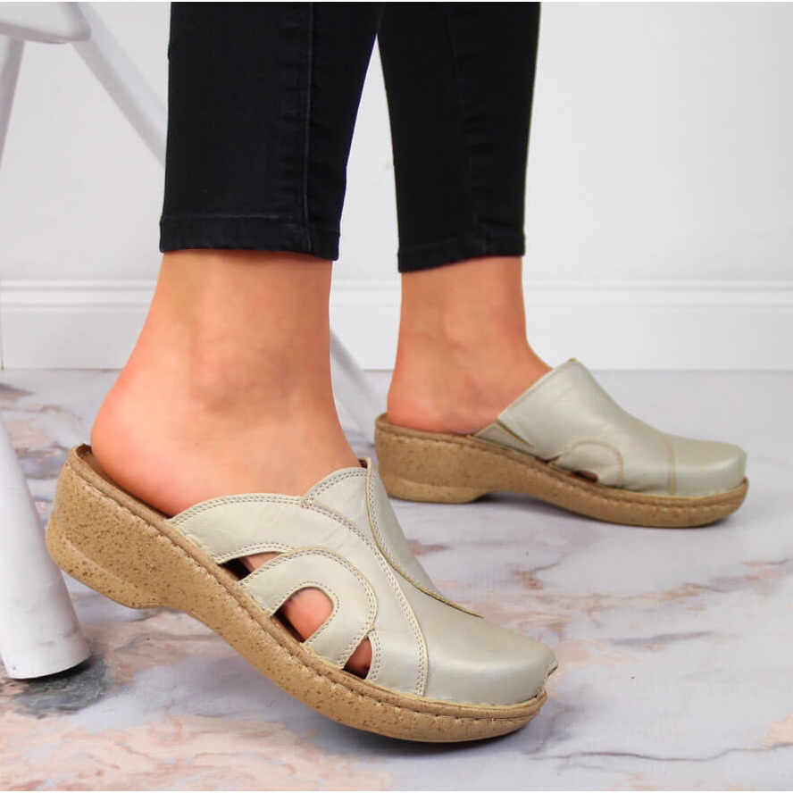 Nous souhaitons vous présenter des sandales compensées en cuir d'une belle couleur dorée du célèbre fabricant polonais, la marque Łukbut. Ces tongs élégantes et stylées sont le choix parfait pour les femmes qui apprécient le confort et un look tendance au quotidien.