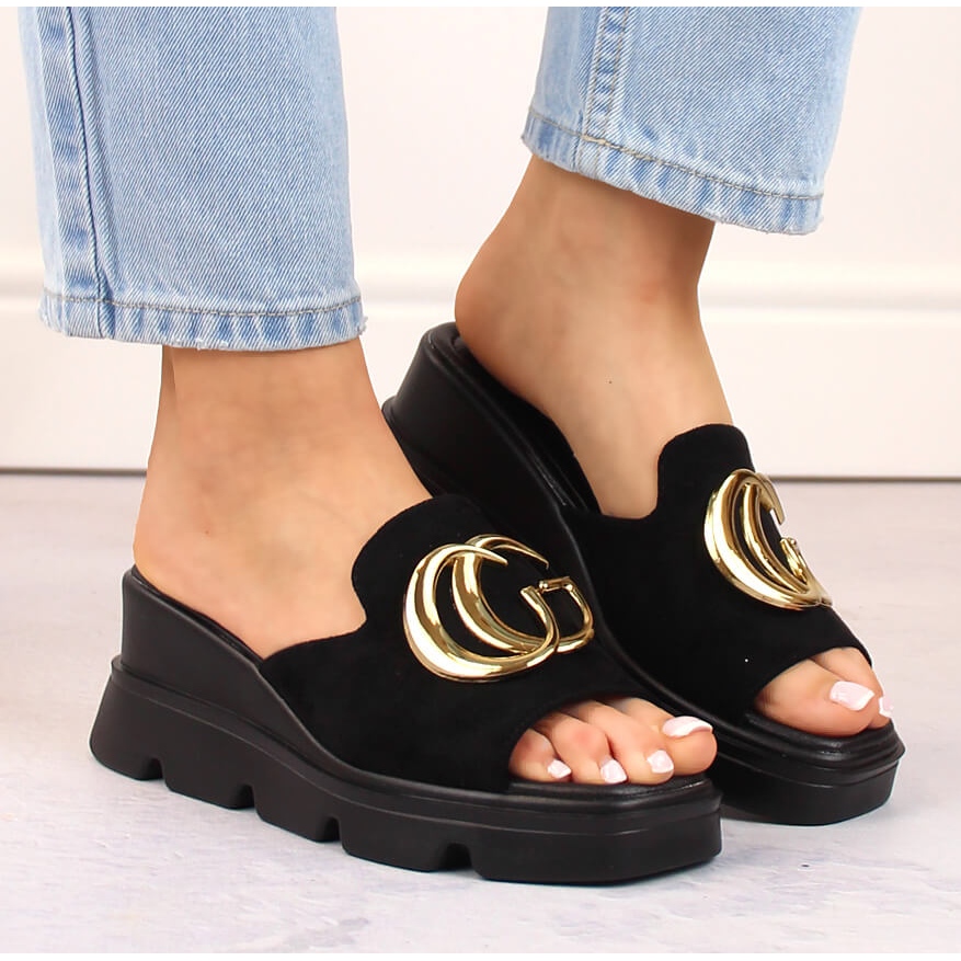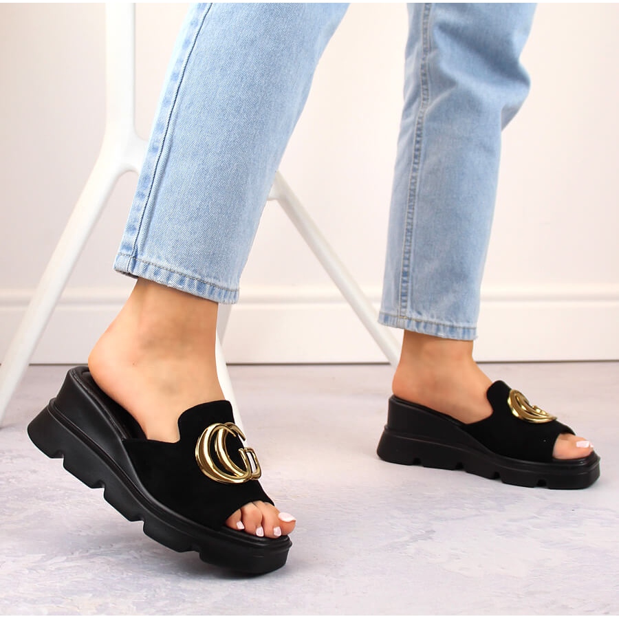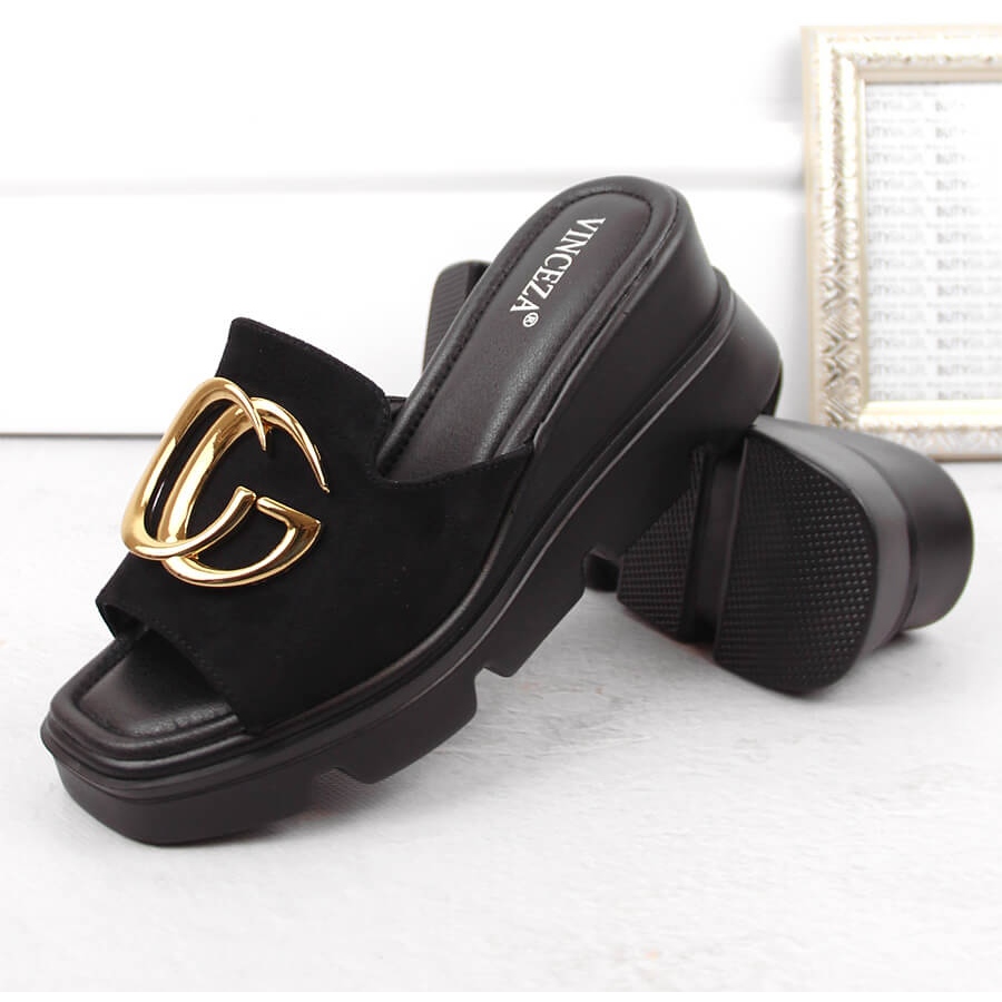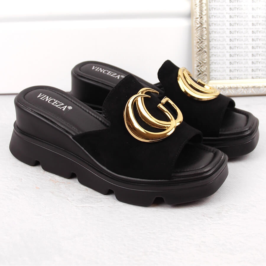 Les pantoufles compensées en daim pour femmes, noires Vinceza 58295, sont le choix parfait pour les femmes qui apprécient l'élégance et le confort au quotidien. Fabriqués en cuir suédé écologique de haute qualité, ils offrent un look et une durabilité uniques. Ces tongs se distinguent par leur couleur noire classique, qui se marie parfaitement avec différents styles, aussi bien décontractés qu'élégants.