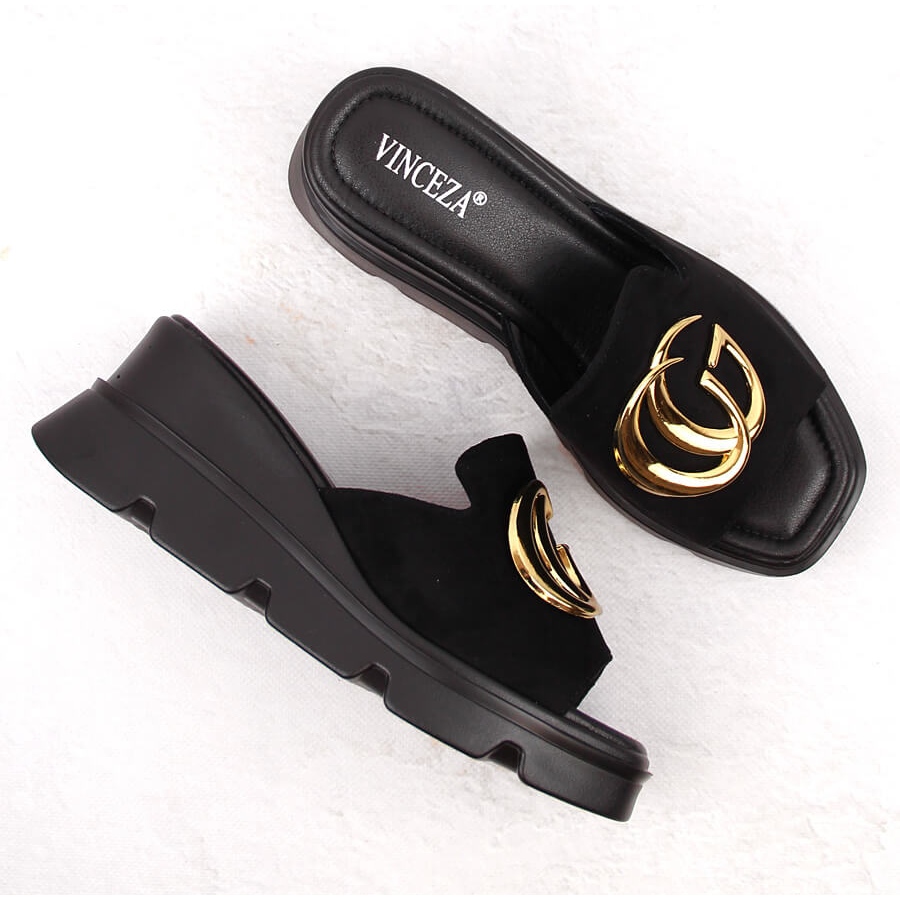 Détails: Chaussons compensés en daim pour femmes, noirs, Vinceza 58295 le noir