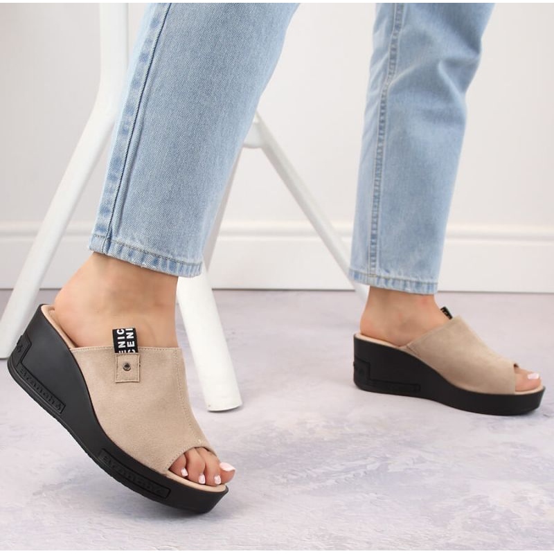 Détails: Chaussons compensés en daim Vinceza W JAN278 beige