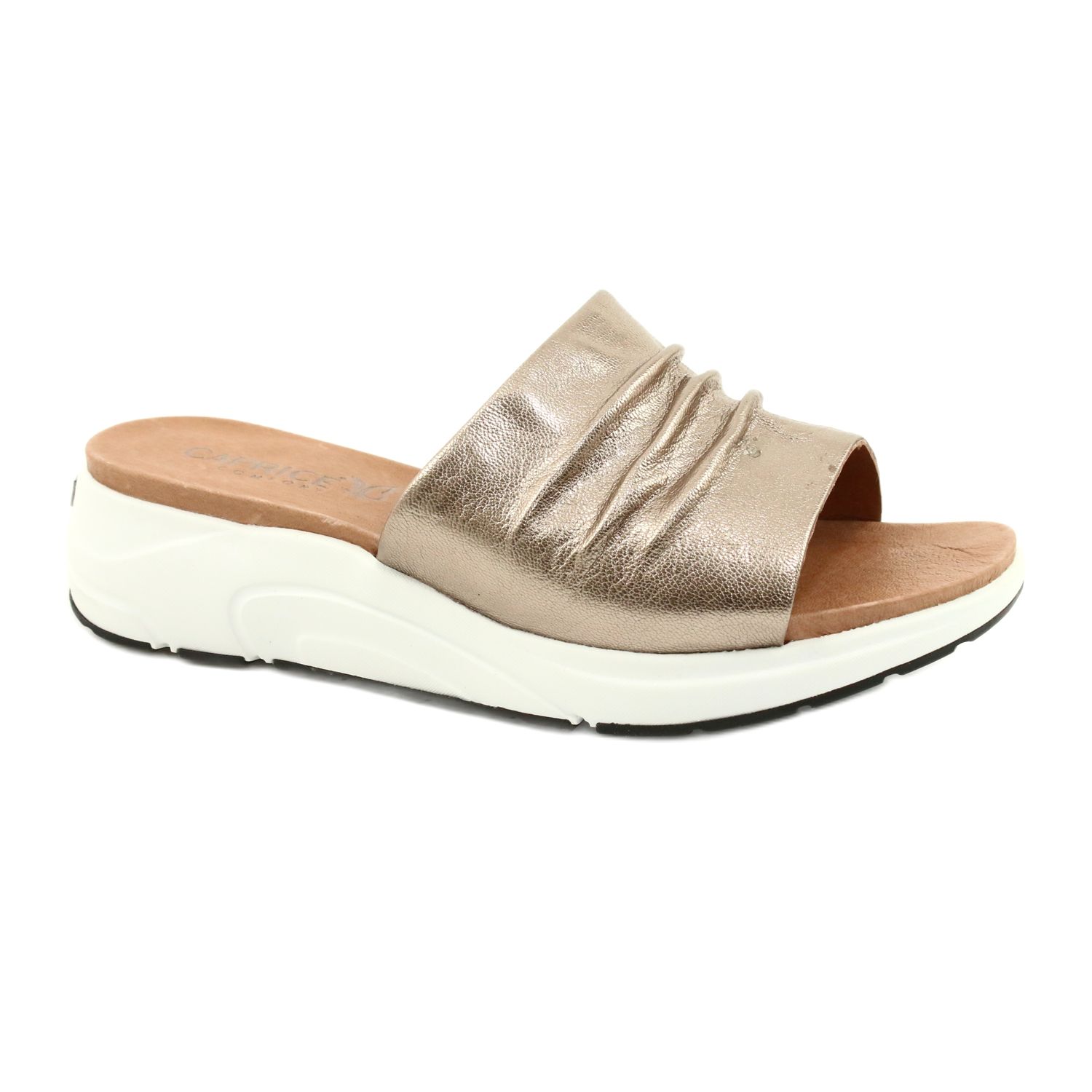 Caprice Women's Taupe Metallic 9-27203-26 341-Élégance rencontre le confort. Des pantoufles en tout en cuir naturel, intégrées sur une plate-forme stable d'une hauteur de 4,5 cm, combinent un personnage légèrement sportif avec une conception initiale. La nuance métallique de taupe (brune avec un gloss en or) ajoute un style subtil et rend le modèle correspond parfaitement à la fois tous les jours et les stylisations plus élégantes.