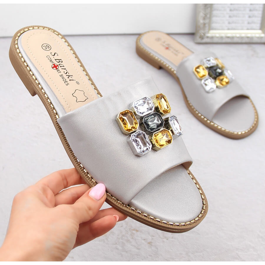 Découvrez l'élégance et le confort dans une paire de chaussures! Les pantoufles féminines S. Barski 031 sont le choix parfait pour les femmes qui apprécient le confort et un look à la mode. Ces tongs en argent, décorés de zircons efficaces, sont parfaits pour tous les jours et pendant les voyages d'été.