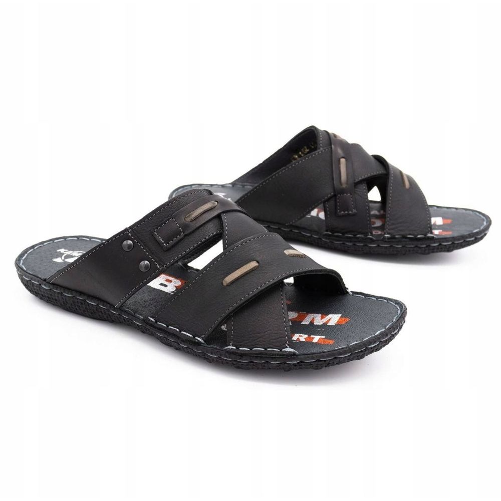 **Tongs en cuir Kampol pour hommes 201/3 noires - le choix parfait pour les journées d'été**