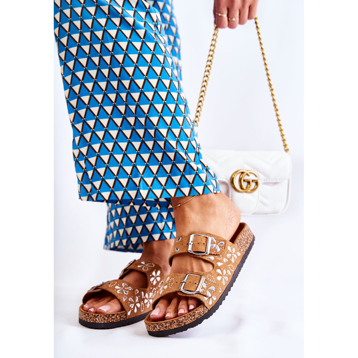 Des jets élégants placés sur les bretelles donnent aux tongs un look tendance et unique, ces petits détails attirent l'attention et ajoutent du caractère à n'importe quel style. La semelle intérieure profilée et confortable en éco-daim rend ce modèle non seulement esthétique, mais aussi confortable - parfait pour un usage quotidien.