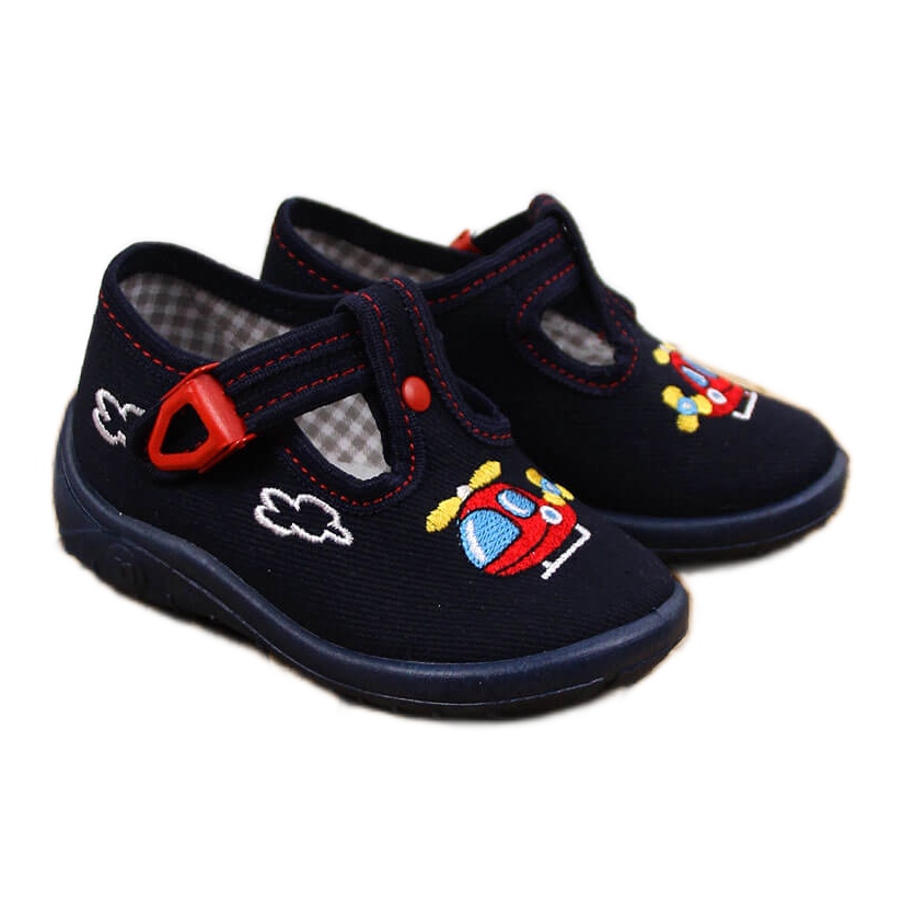 La tige est constituée de matériaux textiles naturels, ce qui garantit une bonne ventilation des pieds. La couleur bleu marine avec des accents bleus rend les pantoufles à la fois élégantes et universelles. La fermeture à boucle facilite l'enfilage et le retrait, ce qui est important pour les enfants d'âge préscolaire indépendants.