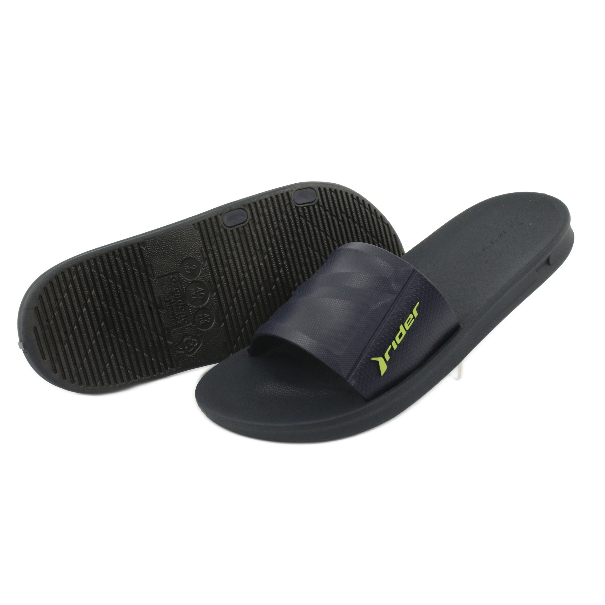 Les tongs de piscine Rider 11578 dans une couleur bleu marine juteuse avec des inserts verts sont un choix parfait pour les personnes qui passent activement du temps dans l'eau et à l'extérieur. Grâce au plastique de haute qualité avec lequel elles sont fabriquées, ces tongs sont extrêmement durables et résistantes à l'eau, ce qui les rend idéales pour une utilisation à la piscine, au sauna ou à la plage.