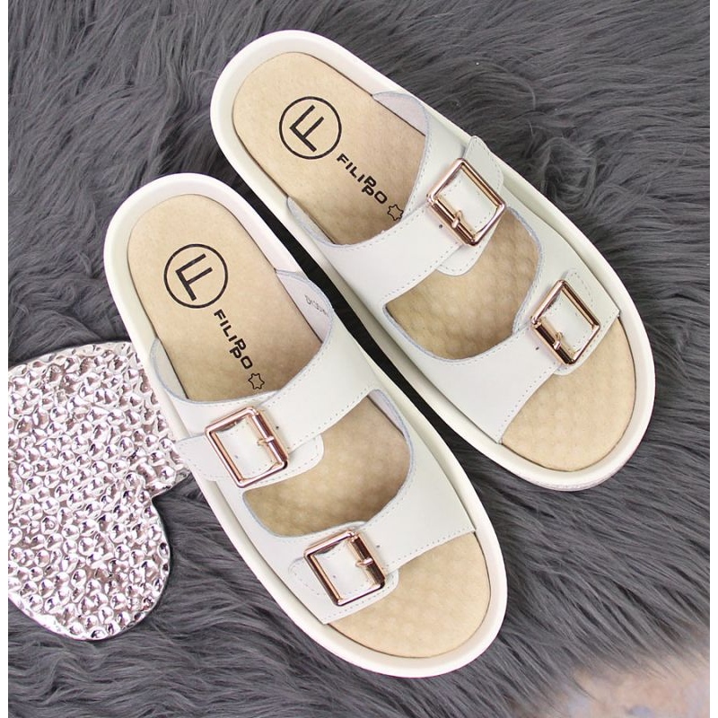Détails: Chaussons en cuir à boucles Filippo W PAW346B blanc blanche