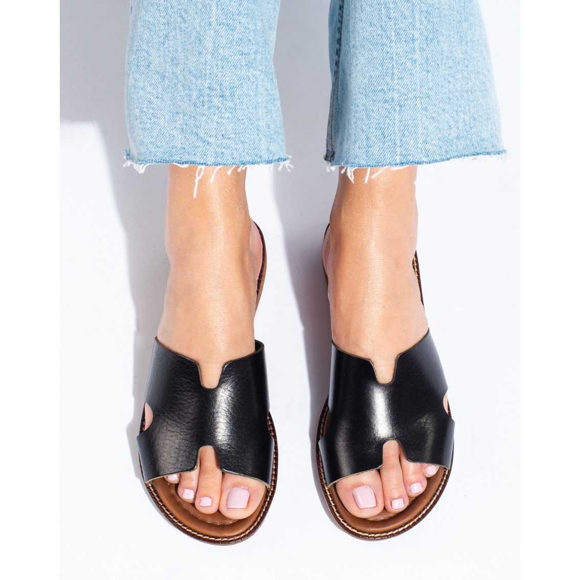 Détails: W. Potocki Chaussons en cuir noir pour femmes de Potocki