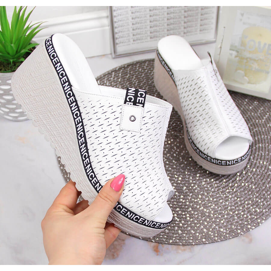 Les tongs en cuir féminin - blanc, artiker