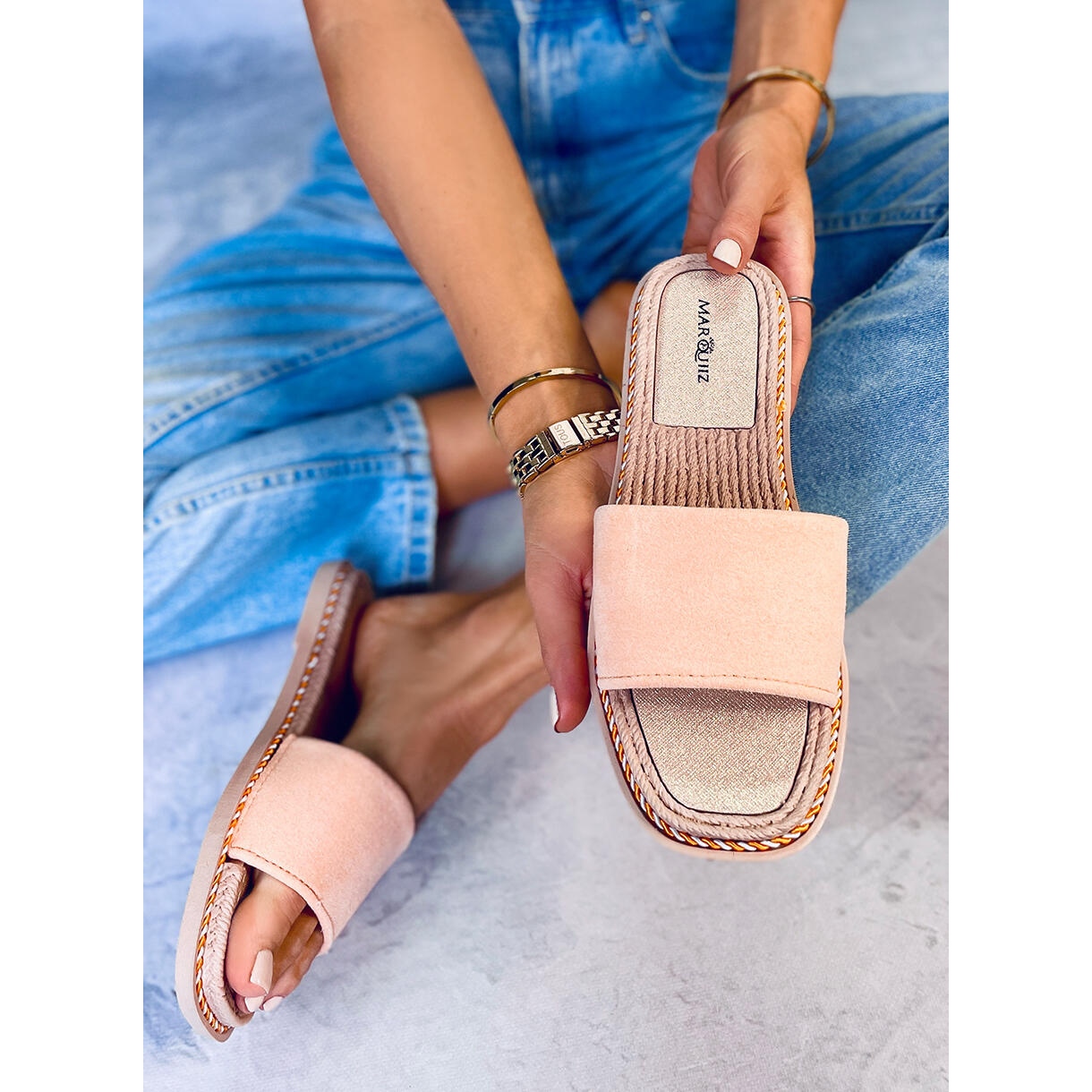 Fabriquées en cuir écologique de haute qualité avec une texture en daim, les tongs sont non seulement élégantes, mais sont également respectueuses de l'environnement. Le passepoil décoratif subtil ajoute de la classe, tandis que l'insert brillant sur l'insert intérieur attire le regard, offrant un effet unique qui s'adapte parfaitement aux styles estivaux.