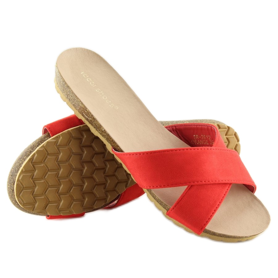 Nous vous présentons des pantoufles en daim pour femmes d'une couleur rouge intense, SR-2812 Orange, qui seront le complément parfait à tout style estival. L'utilisation de daim écologique comme matériau extérieur rend les tongs non seulement élégantes, mais aussi respectueuses de l'environnement.