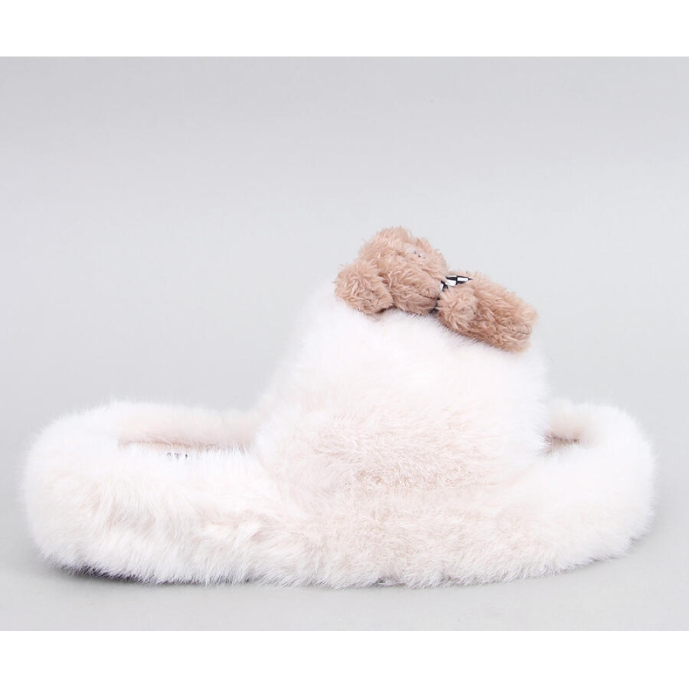Inna marka Chaussons en fourrure beige avec un ours en peluche