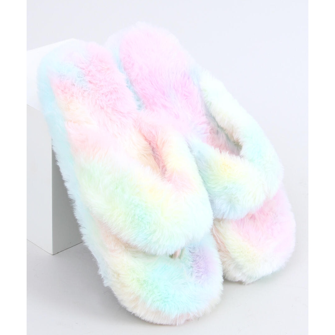 Inna marka Chaussons en fourrure de lapin coloré bleu rose jaune
