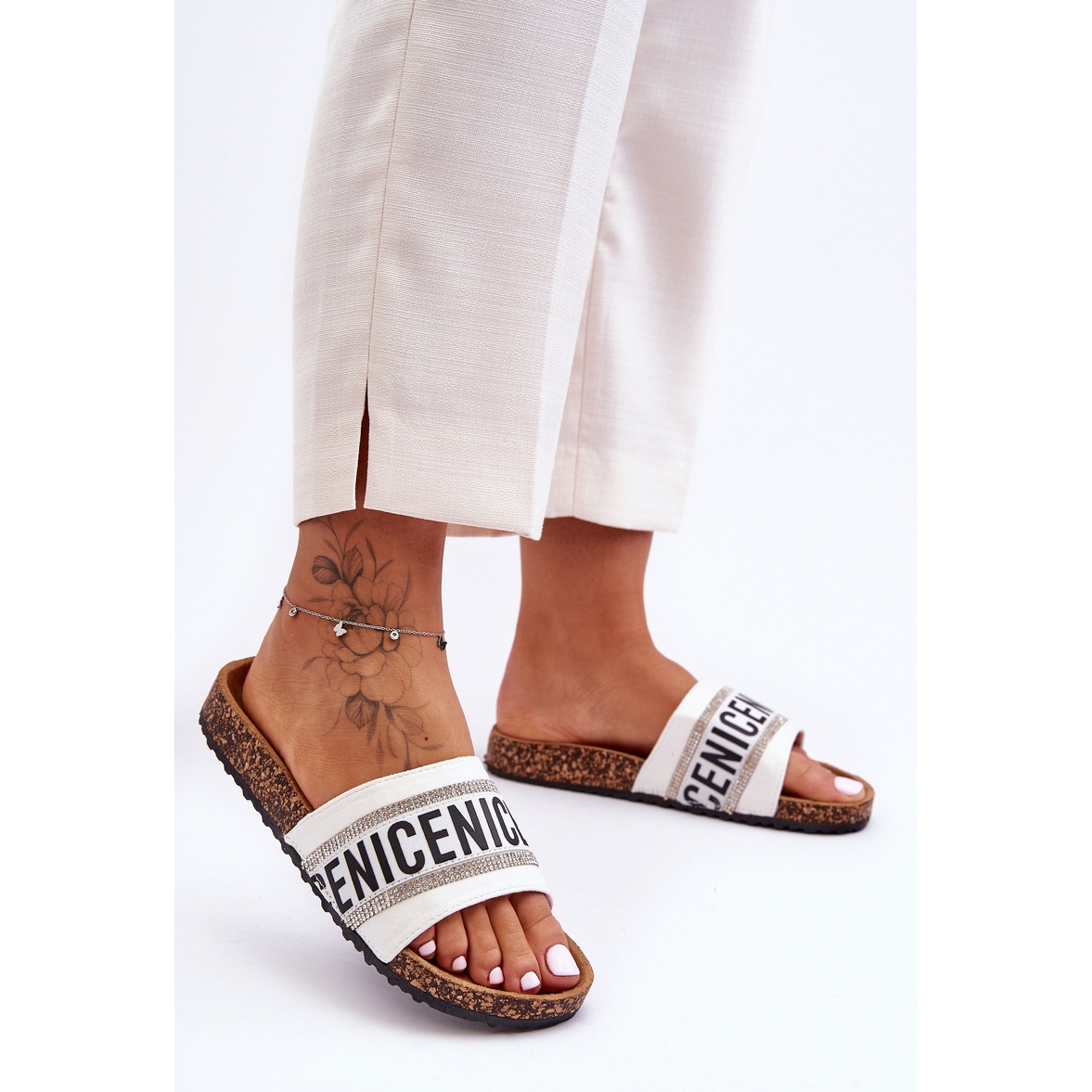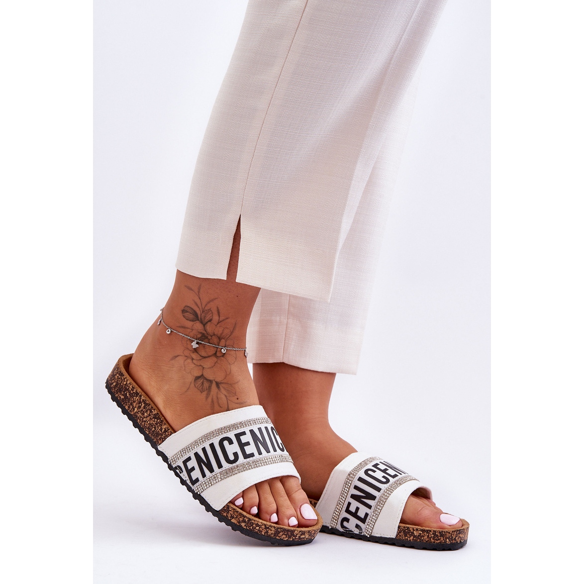 Inna marka Chaussons En Liège Avec Zircon Blanc Be Nice blanche