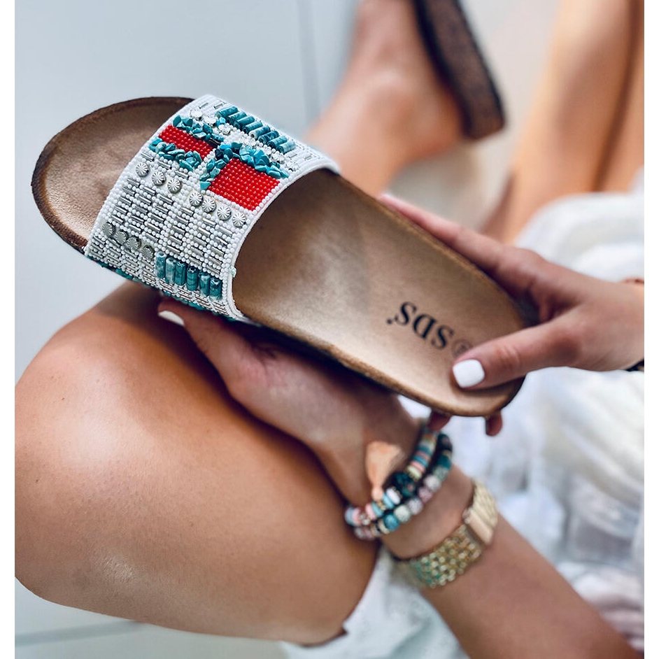 Les tongs en liège Taida White sont un choix parfait pour les femmes qui apprécient le confort et le style. Fabriquées en daim écologique, ces tongs blanches séduisent par des décorations accrocheuses de style ethno qui leur confèrent un caractère unique. Grâce à l'insert intérieur soigneusement profilé et recouvert de tissu, les tongs offrent un confort exceptionnel, parfait pour les longues promenades estivales.
