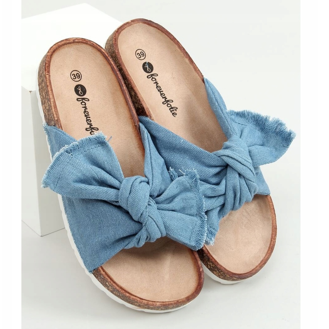 Nous vous présentons des tongs en coton avec une semelle en liège dans une belle nuance de bleu, modèle WS11 L.BLUE. Ces tongs élégantes pour femmes sont le choix parfait pour les journées d’été ! Leur avantage unique est un charmant nœud sur le devant, qui attirera certainement l'attention et ajoutera du charme à votre style estival.