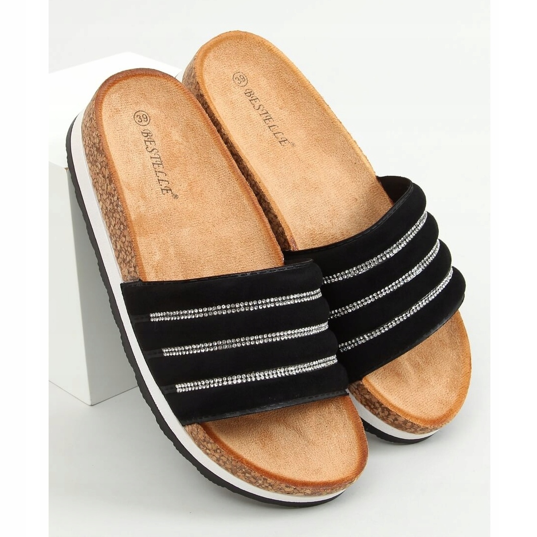 Les tongs en liège noir LS018 Black sont une proposition idéale pour les femmes qui apprécient le confort et le design à la mode. Fabriquées en daim écologique de haute qualité, ces tongs en daim avec semelle en liège de 4 cm de hauteur s'adaptent parfaitement aux tendances actuelles. La large bride ornée de zircons spectaculaires est non seulement attrayante, mais assure également un maintien stable du pied, ce qui en fait un choix idéal pour un usage quotidien.