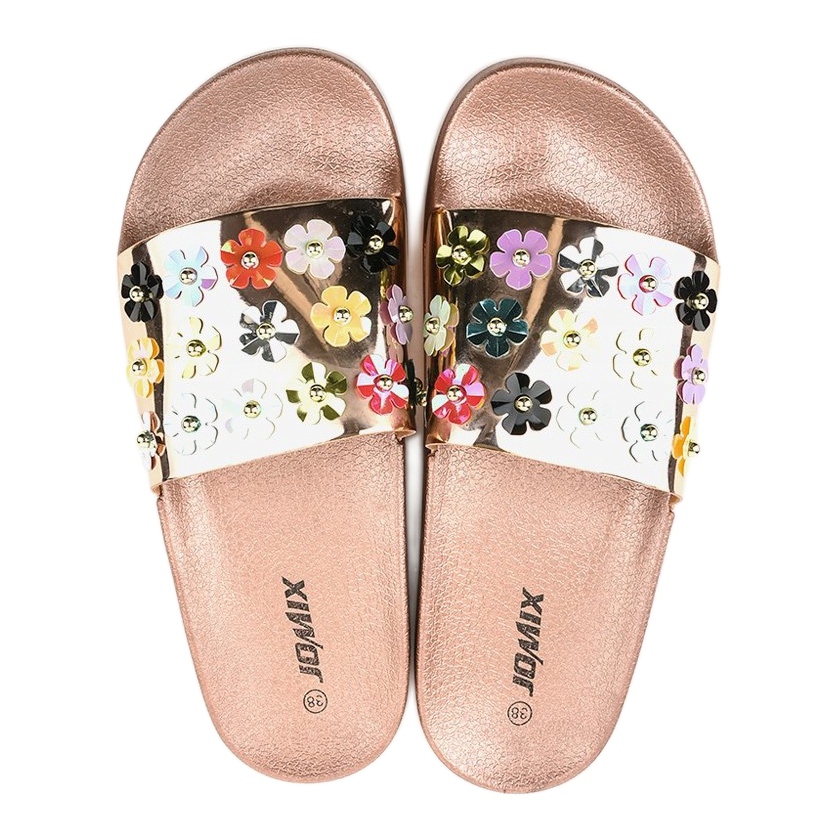 Inna marka Chaussons en or rose avec fleurs D7659-2 jaune