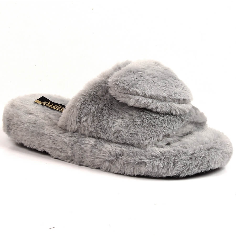 Détails: Chaussons en peluche pour femme avec un cœur, gris T.Sokolski