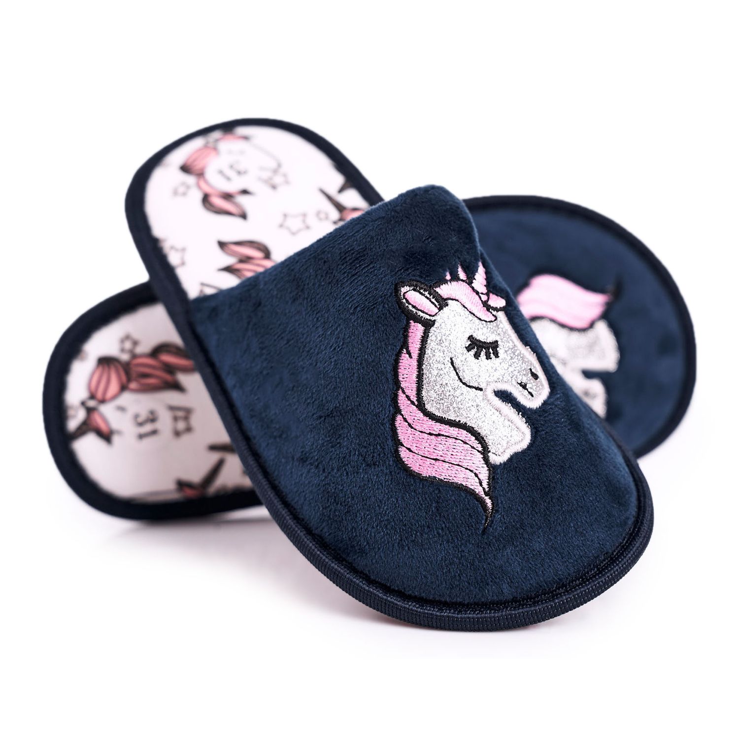 Inna marka Chaussons Enfant Avec Licorne Licorne Bleu Marine