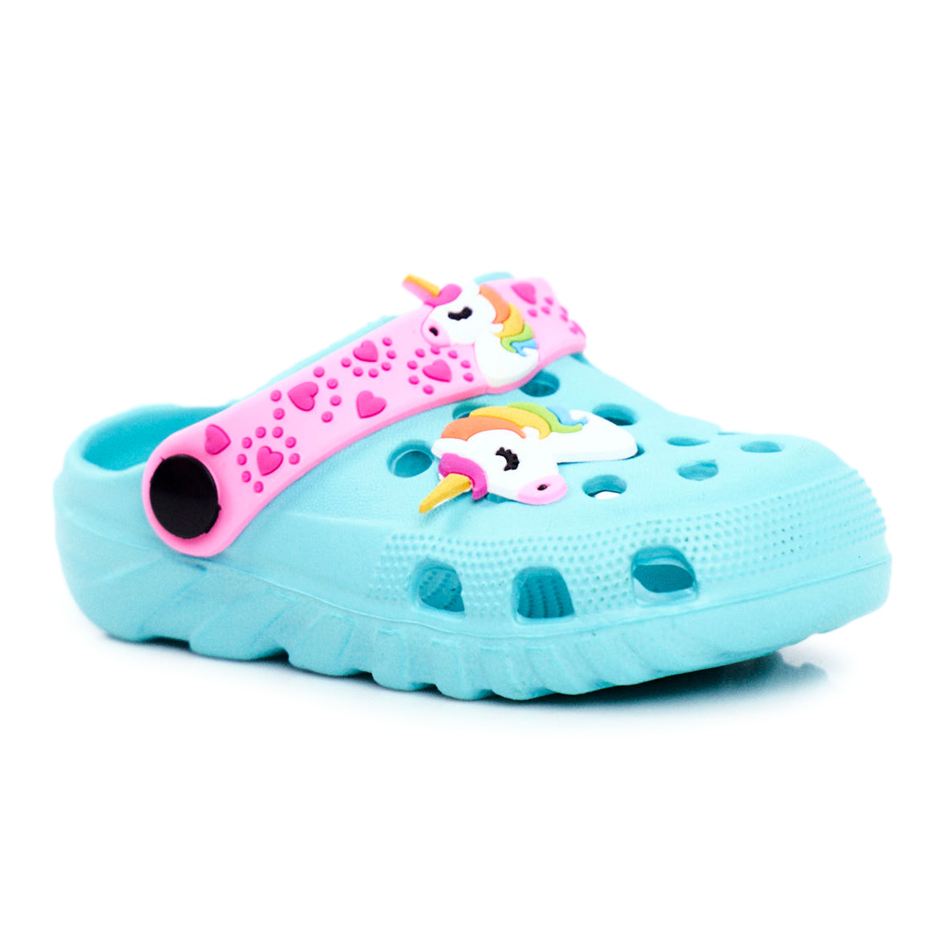 Nous vous présentons les adorables chaussons enfant Bona en version mousse croco qui charmeront toutes les petites filles ! Ces chaussures bleues uniques avec un motif licorne et une rayure rose avec des cœurs sont le choix parfait pour les loisirs quotidiens, les promenades en ville et les visites à la piscine. Grâce à l'utilisation de mousse légère et résistante, les tongs sont non seulement confortables, mais assurent également la sécurité pendant l'activité.