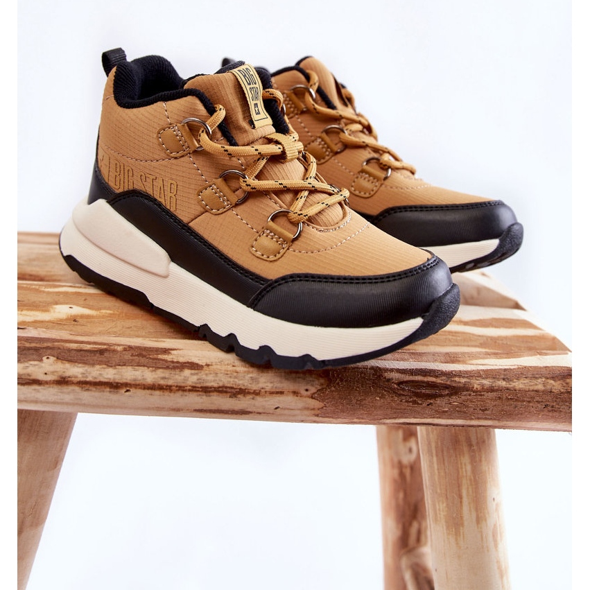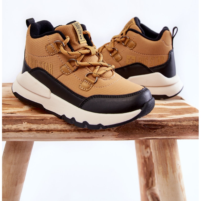Les bottes de la collection Big Star sont une proposition pour les jours froids - la partie supérieure de matériau synthétique de haute qualité dans une teinte brune chaude et une semelle intérieure à mémoire de matériau mous et de matériau qui se souvient de la forme du pied. Grâce à cela, les chaussures s'adaptent parfaitement au pied, amortissent les chocs, sont résistantes à la déformation et soutiennent l'humidité et la régulation de la température. Le talon légèrement raidi assure la stabilisation et la semelle non glissante en plastique en caoutchouc garantit une certaine étape sur les surfaces glissantes.