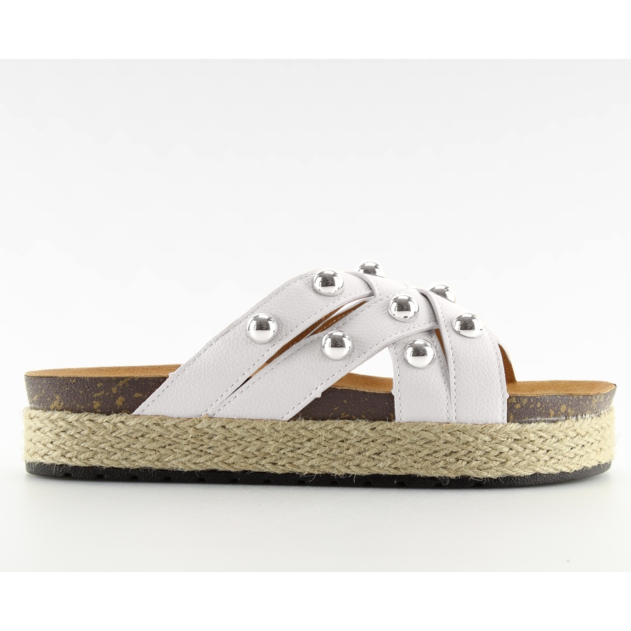 Découvrez les tongs espadrilles CK22P dans un élégant coloris blanc, qui complèteront parfaitement n'importe quel style estival. Ces tongs pour femmes uniques se distinguent des autres grâce à une semelle haute garnie de ficelle en lin et des détails accrocheurs en forme de boules argentées qui leur donnent du caractère et de l'unicité.