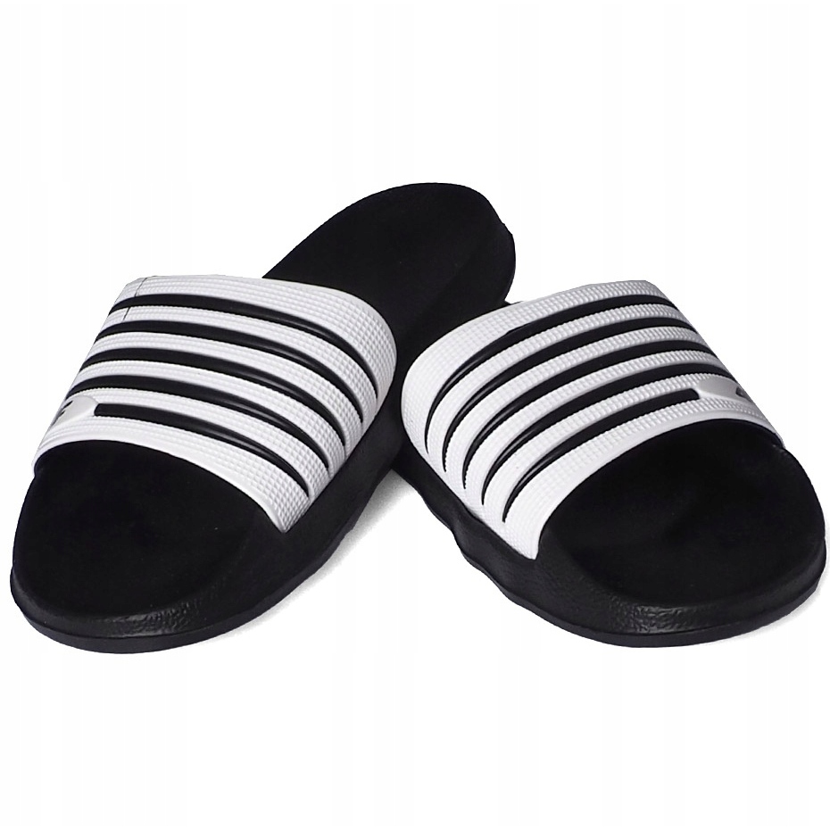 Les pantoufles féminines 4F classiques et confortables, parfaites pour l'été - pour une promenade, au-dessus de la piscine ou de la plage. Une coupe simple et fonctionnelle avec des rayures contrastées en noir et blanc correspond à de nombreuses stylisations d'été.