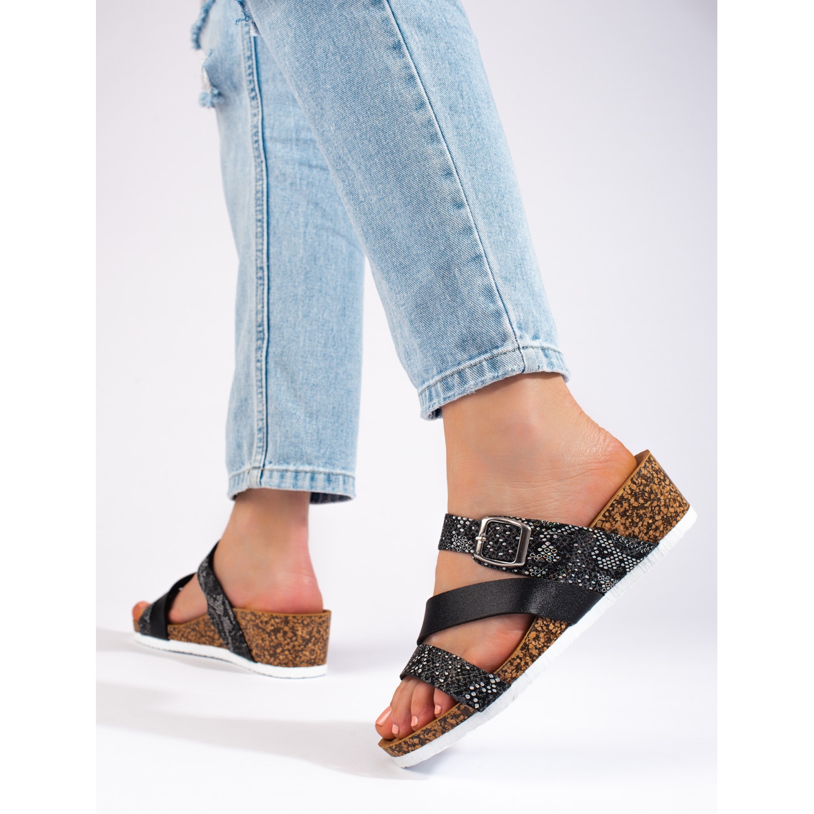 Élégance et confort peuvent aller de pair grâce aux chaussons compensés bas pour femmes de W. Potocka. Ce modèle impressionne par son design universel et intemporel qui s'intégrera facilement dans la garde-robe quotidienne de chaque femme. Les tongs noires profondes sont un excellent choix pour ceux qui apprécient le style classique avec une touche de modernité.