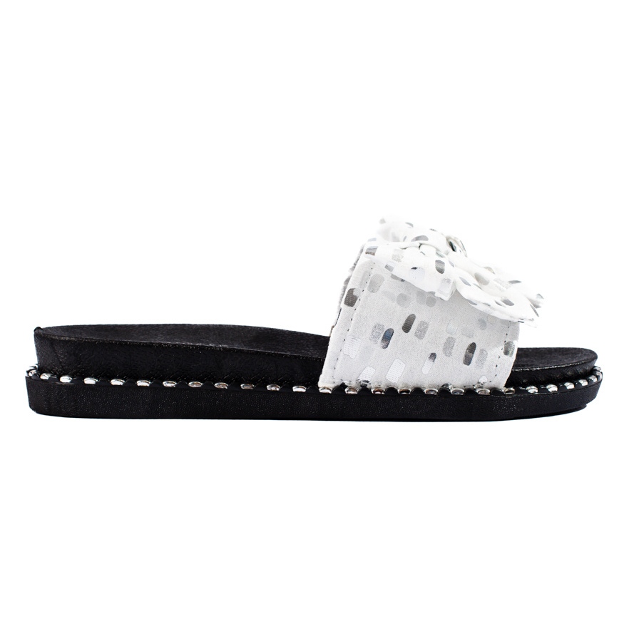 Des éléments supplémentaires tels que des strass ou un nœud constituent une décoration subtile qui décore délicatement les tongs et leur confère un caractère individuel. Le matériau extérieur et l'insert en cuir écologique sont un bon choix pour ceux qui recherchent une alternative au cuir naturel.