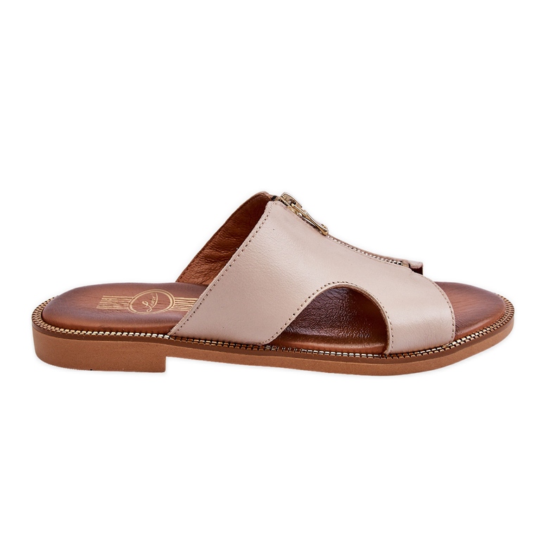 Lemar Clarence - Les tongs pour femmes avec une serrure beige décorative (S.Taupe). Un modèle classique en cuir naturel de haute qualité, combinant le confort du port de tous les jours avec des détails subtils à la mode. La structure glissée, les découpes latérales et la fermeture éclair décorative et les jets leur donnent un personnage légèrement boho - ils s'adaptent bien aux robes d'été, aux shorts lâches et aux jupes.