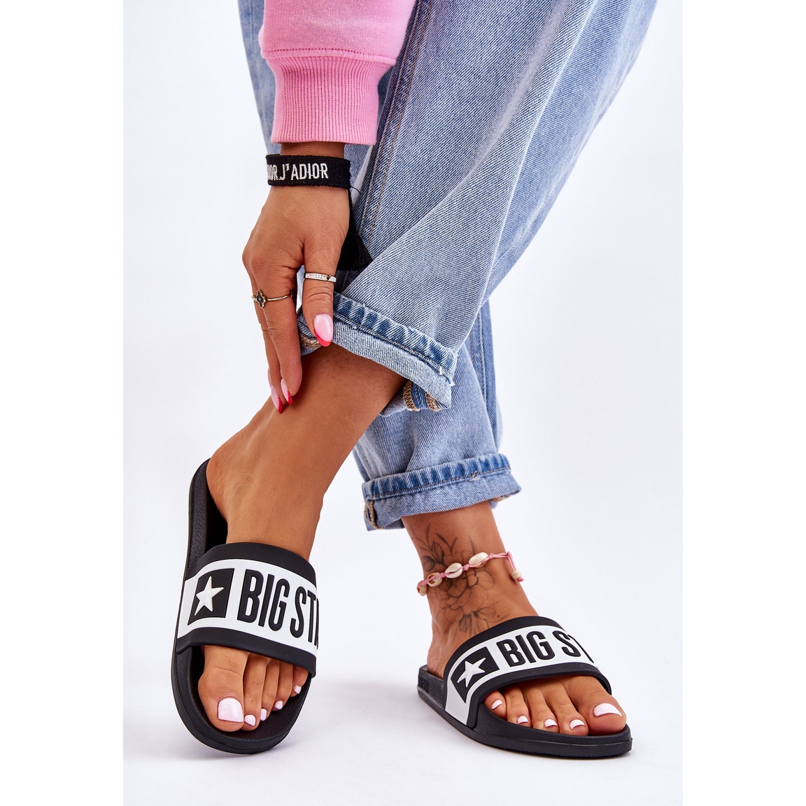 Des volets Big Star classiques et à la mode en plastique en caoutchouc durable. L'insert et la semelle en matériau en mousse doux assurent le confort même pendant l'usure longue les jours chauds. Une coupe simple et minimaliste en noir avec un logo discrète signifie que le modèle correspond à la fois à la plage et à la piscine et aux stylisations d'été quotidiennes.