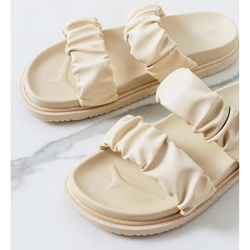 Les tongs minimalistes et élégants Buzzo beige sont un excellent choix chaque jour. La tige froissée en cuir écologique de haute qualité ajoute du caractère et s'inscrit dans les tendances actuelles, et la semelle en caoutchouc et l'insertion offrent un confort tout au long de la journée. Les pantoufles sur la plate-forme de 2,5 cm allongent optiquement la figure, en maintenant la stabilité et la commodité d'utilisation.