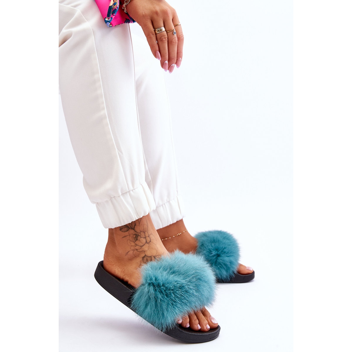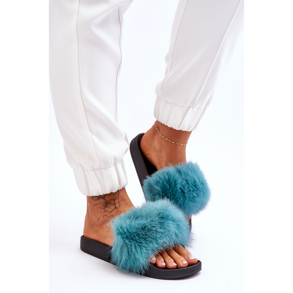 **Tongs en caoutchouc Lucrece turquoise pour femmes avec fourrure**