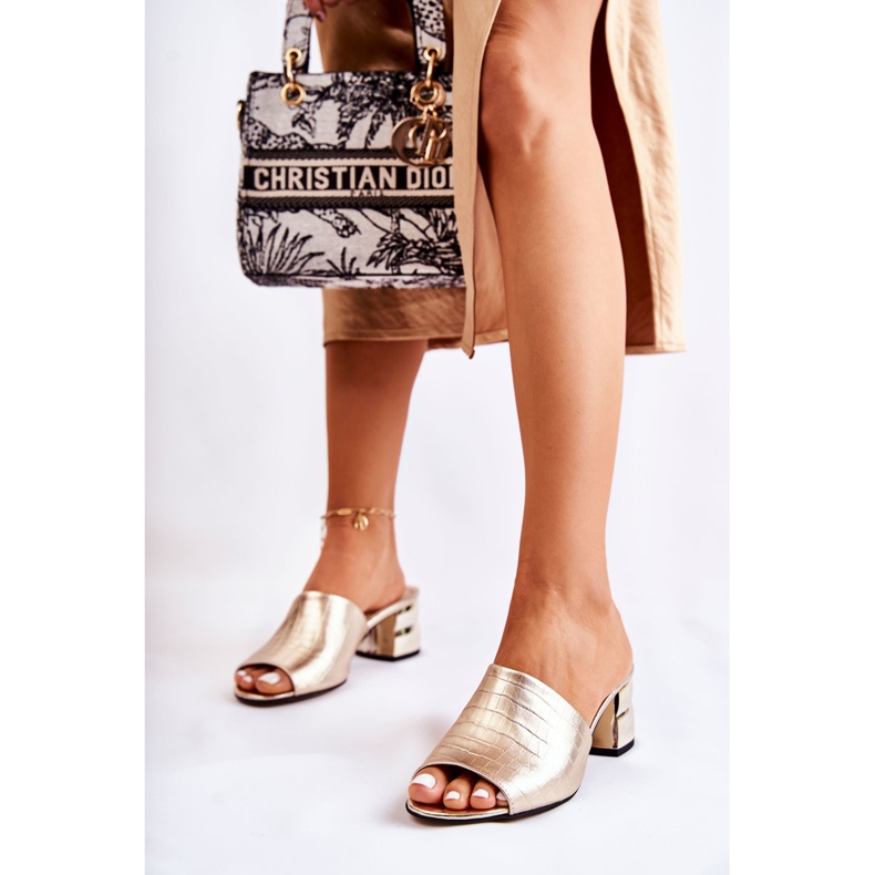 PA2 PA2 Chaussons Femme Cuir Motif Crocodile Sur Talon Golden Perry d'or