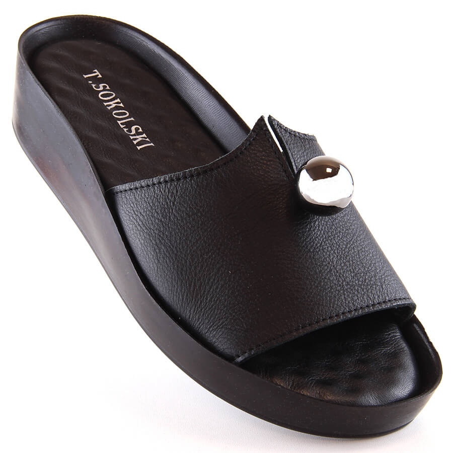 En résumé, les tongs en cuir noir pour femme T.Sokolski L22-312 sont l'alliance parfaite entre élégance, confort et qualité. Leur esthétique universelle en fait un ajout tendance et pratique à votre garde-robe pendant de nombreuses saisons.