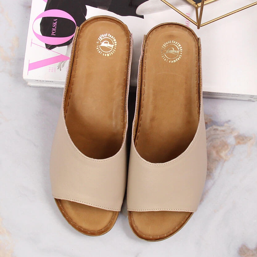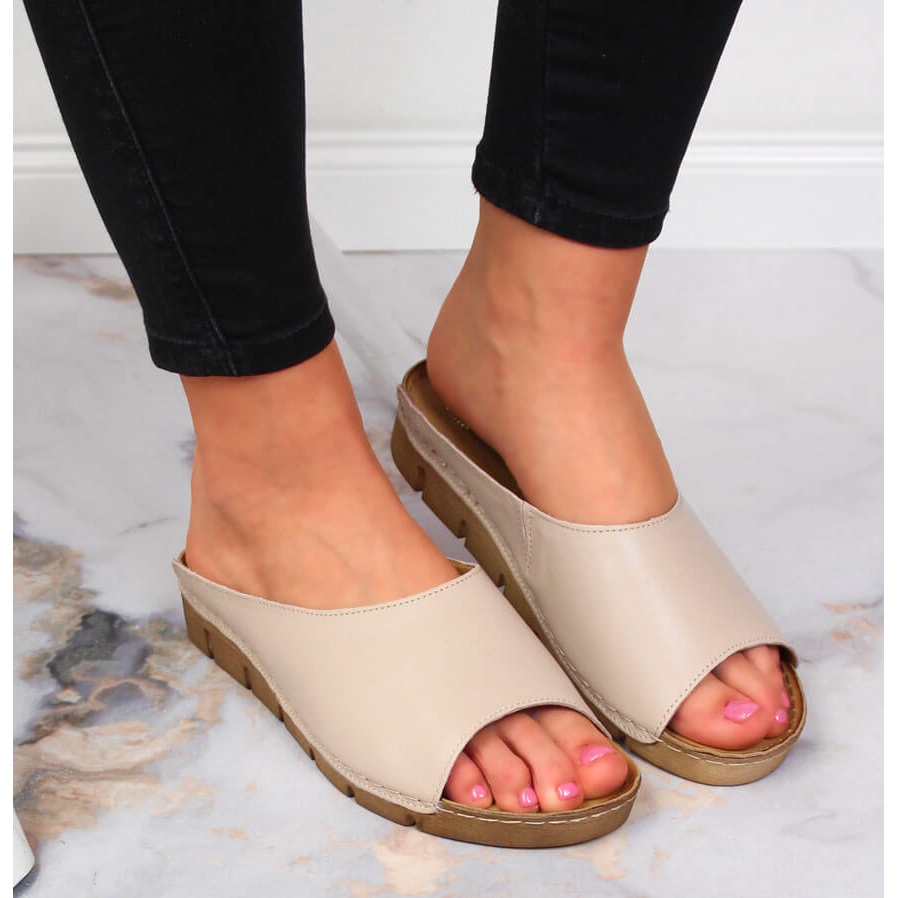Choisissez les pantoufles en cuir crème pour femmes Łukbut 1434 et profitez chaque jour de la combinaison de l'élégance, du confort et du design à la mode. Laissez vos pieds se sentir à l'aise et élégants !