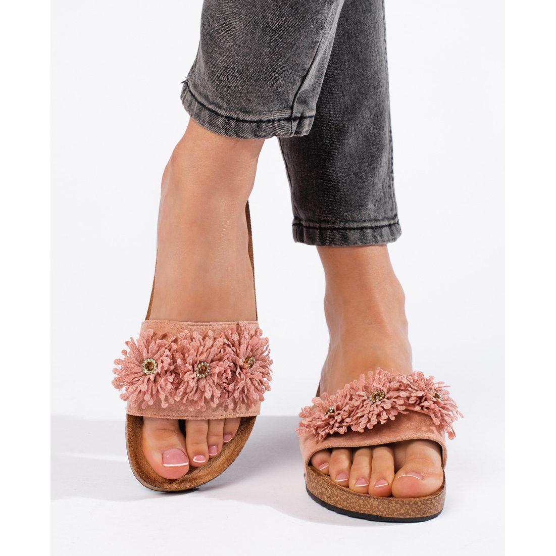 Chaussons femme en daim à fleurs roses - parfaits pour un usage quotidien