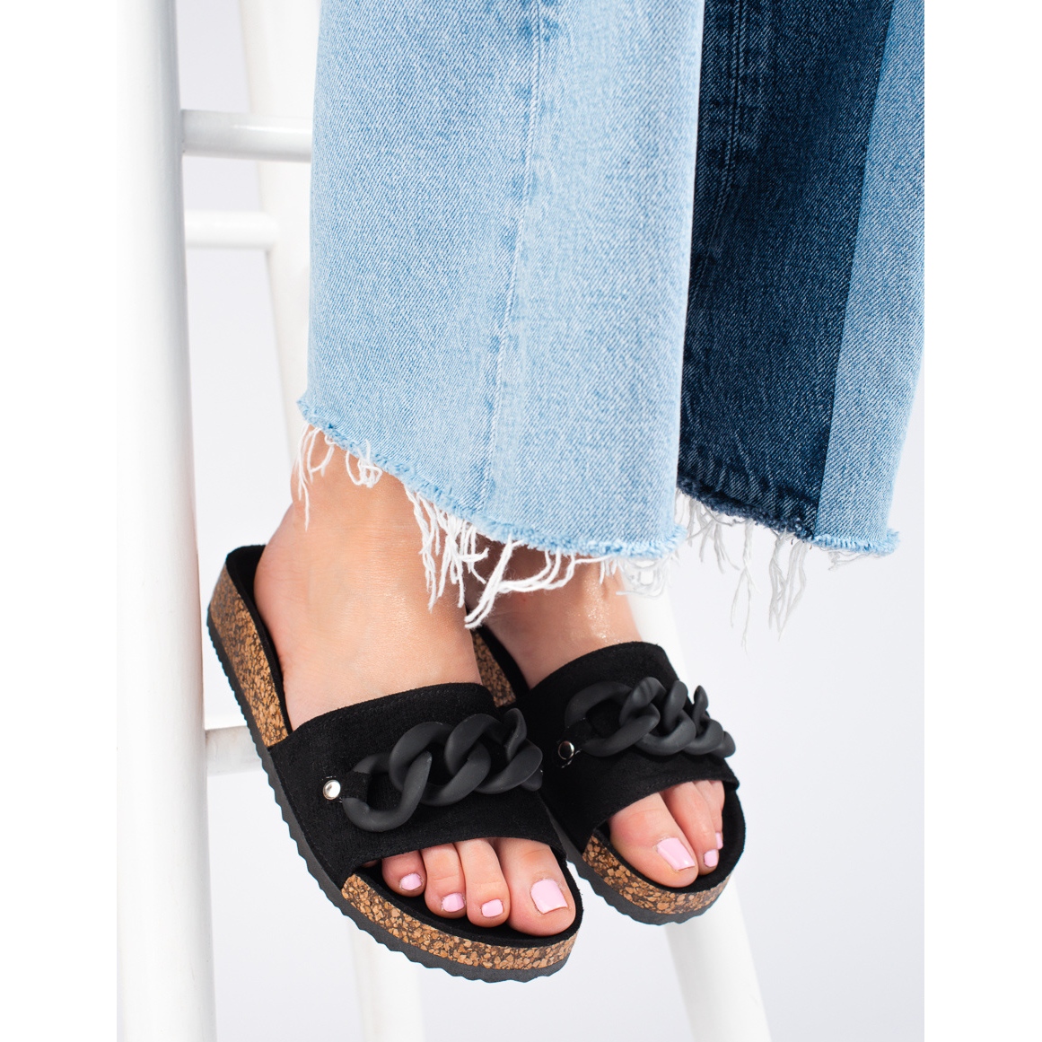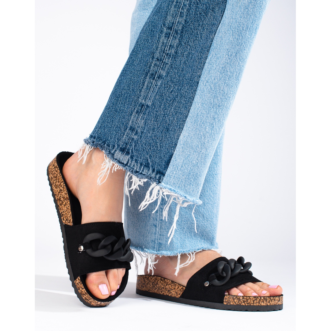 W. Potocki W. Potocki Chaussons femme en daim noir avec chaîne Potocki le noir