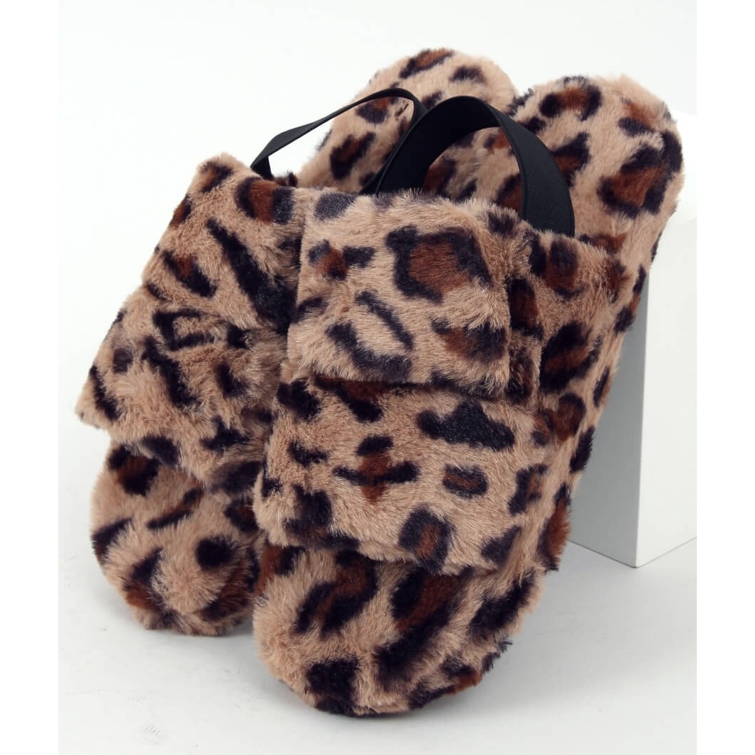 Détails: Chaussons femme en fourrure à pois N-92 Léopard beige brun