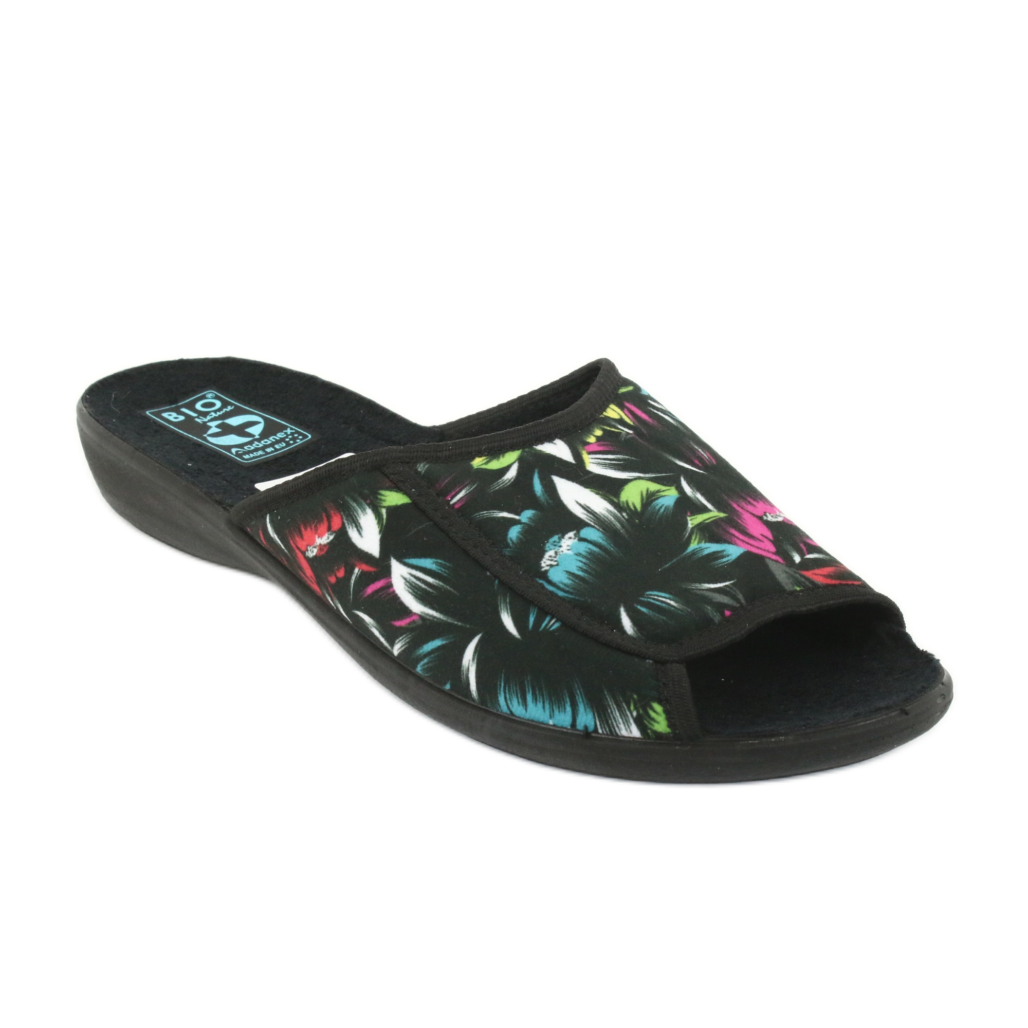 Chaussons femme fleurs Adanex 24301 noir bleu rose vert