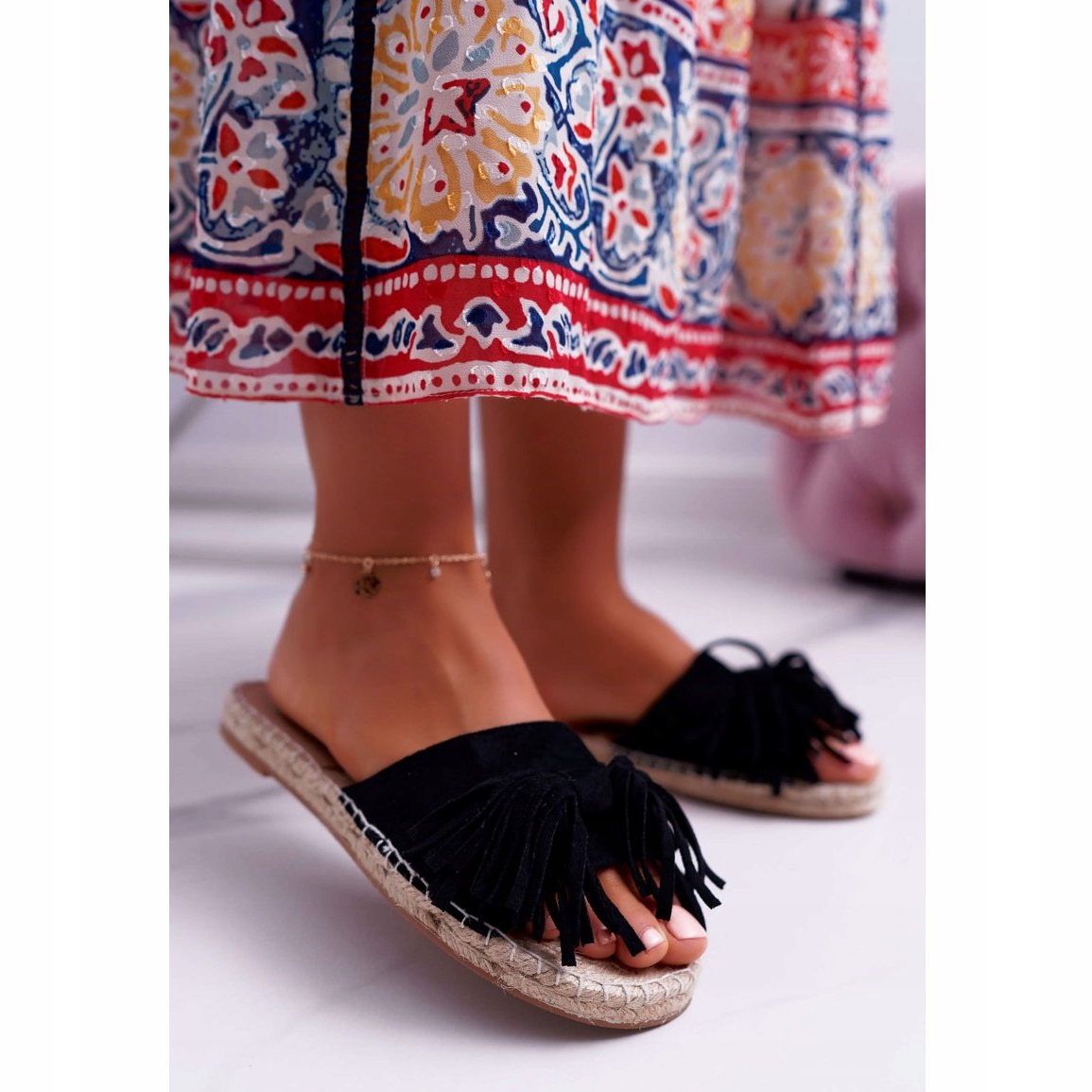 Les tongs noires Boho Vices 8458 pour femmes sont un choix parfait pour toutes les femmes à la recherche de chaussures confortables et élégantes au quotidien. Fabriqués à partir de matériaux de haute qualité, ils allient tendances, mode bohème et fonctionnalité. Leur style unique attire l'attention grâce à de subtiles franges qui ajoutent du caractère, et la semelle tressée garantit non seulement l'esthétique, mais aussi le confort de port.