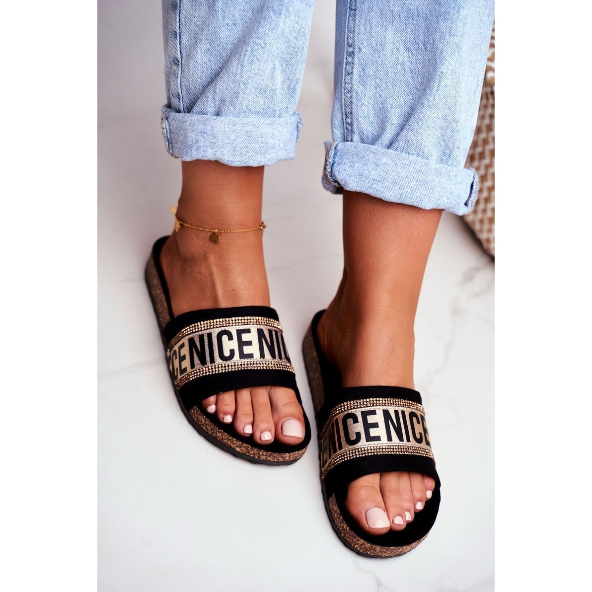 EVE EVE Chaussons Femme Noir Sur Liège BeNice Or Strass le noir jaune