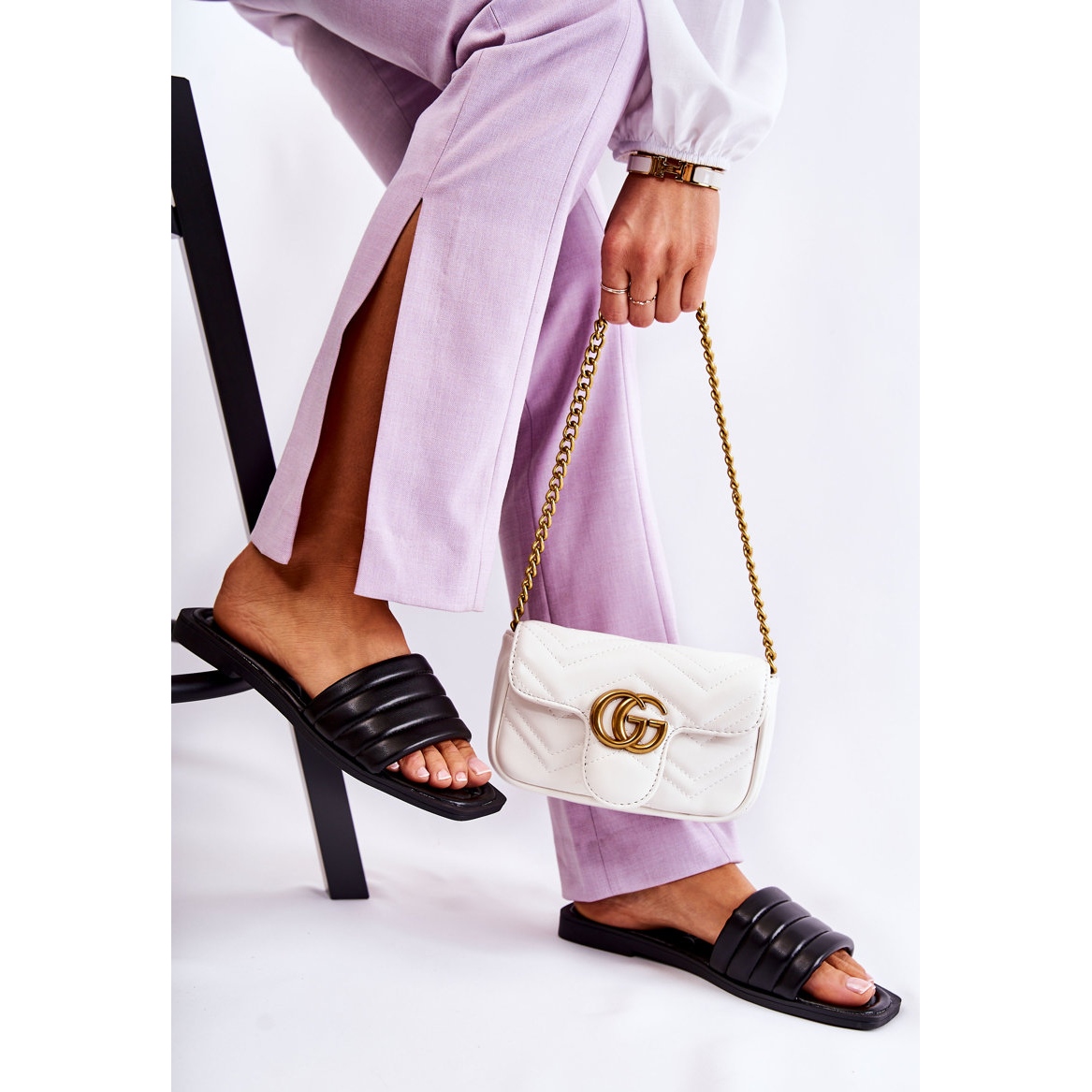 Nous aimerions vous présenter des tongs en cuir pour femmes uniques avec matelassage dans une couleur noire classique du fabricant PG1. Ces élégantes tongs, fabriquées en éco-cuir de haute qualité, sont le choix parfait pour les journées d'été, alliant style et confort.