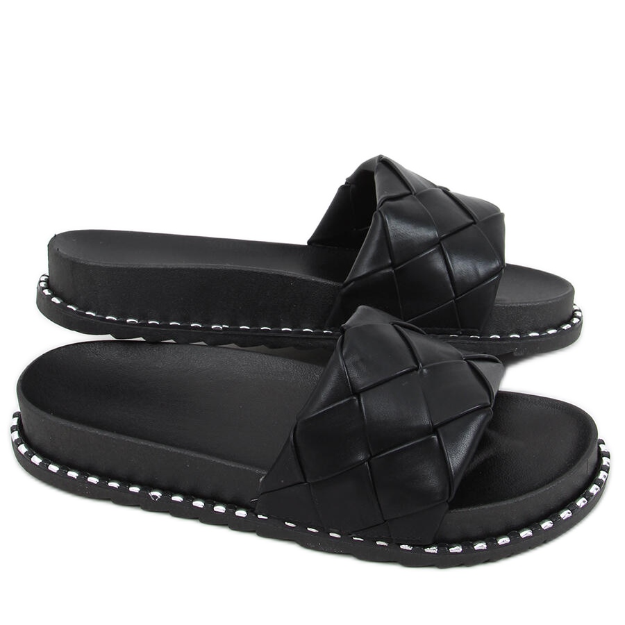 Les tongs pour femmes Sunny Black sont le choix parfait pour les femmes qui souhaitent allier confort et dernières tendances. Ces élégantes tongs noires sont fabriquées dans un cuir écologique de haute qualité, ce qui les rend respectueuses de l'environnement. La large bride tressée leur confère un caractère unique, et la semelle haute tendance, ornée de clous, en fait un véritable hit de la saison.
