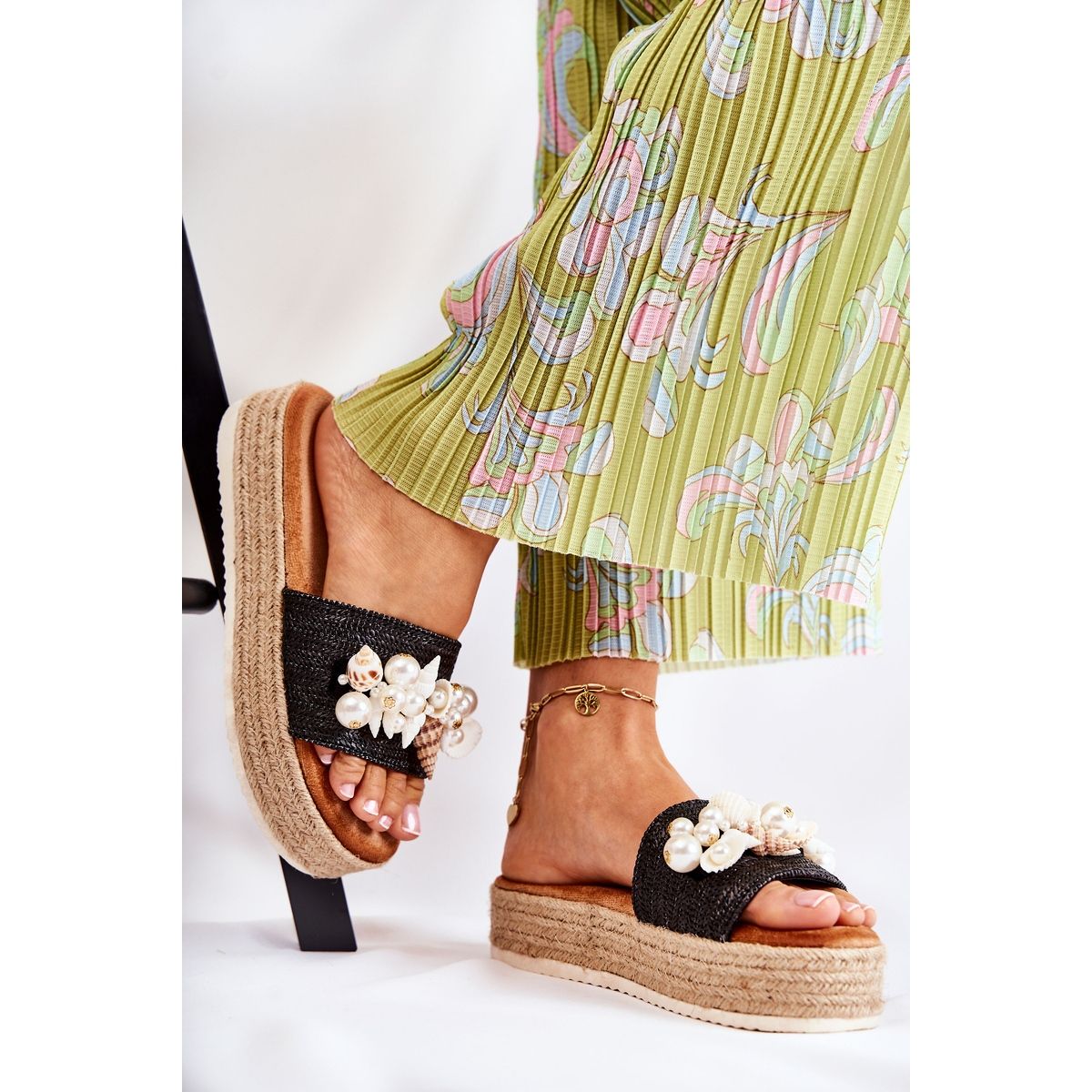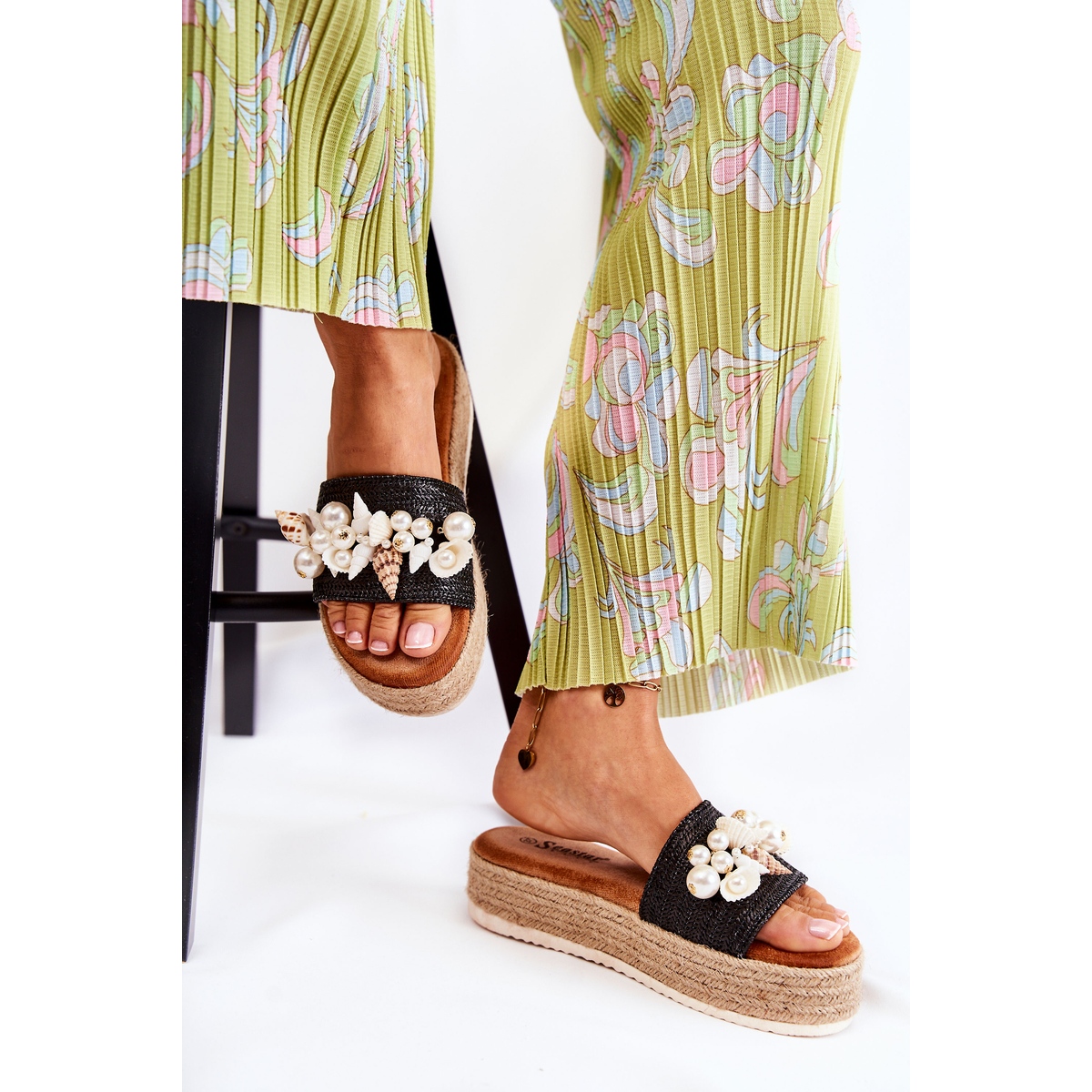 - Modèle: Chaussons Femme Sur La Plateforme Avec Coquillages