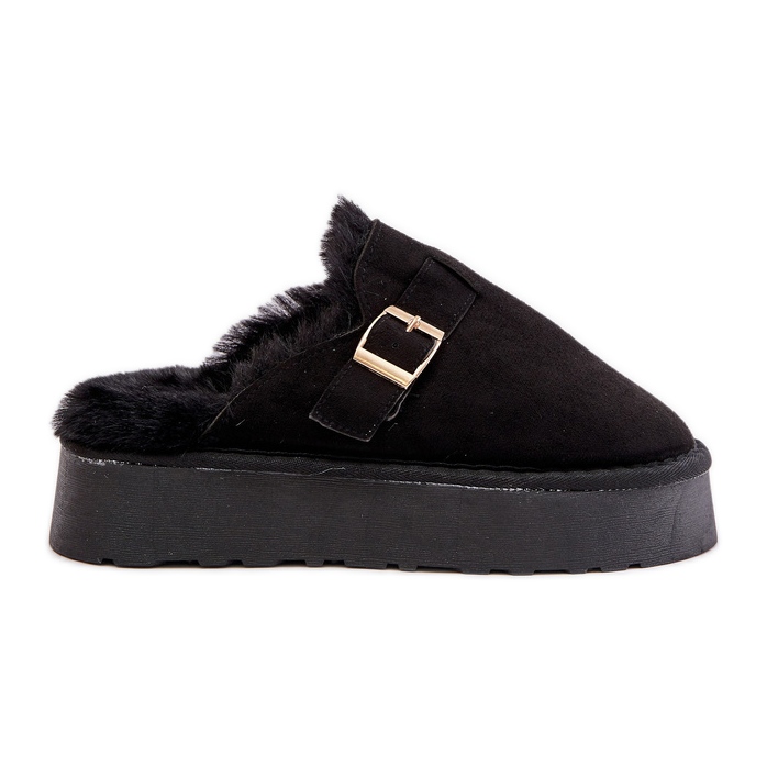 Détails: Chaussons femme sur semelle épaisse avec fourrure et boucle, Linneola Noir le noir