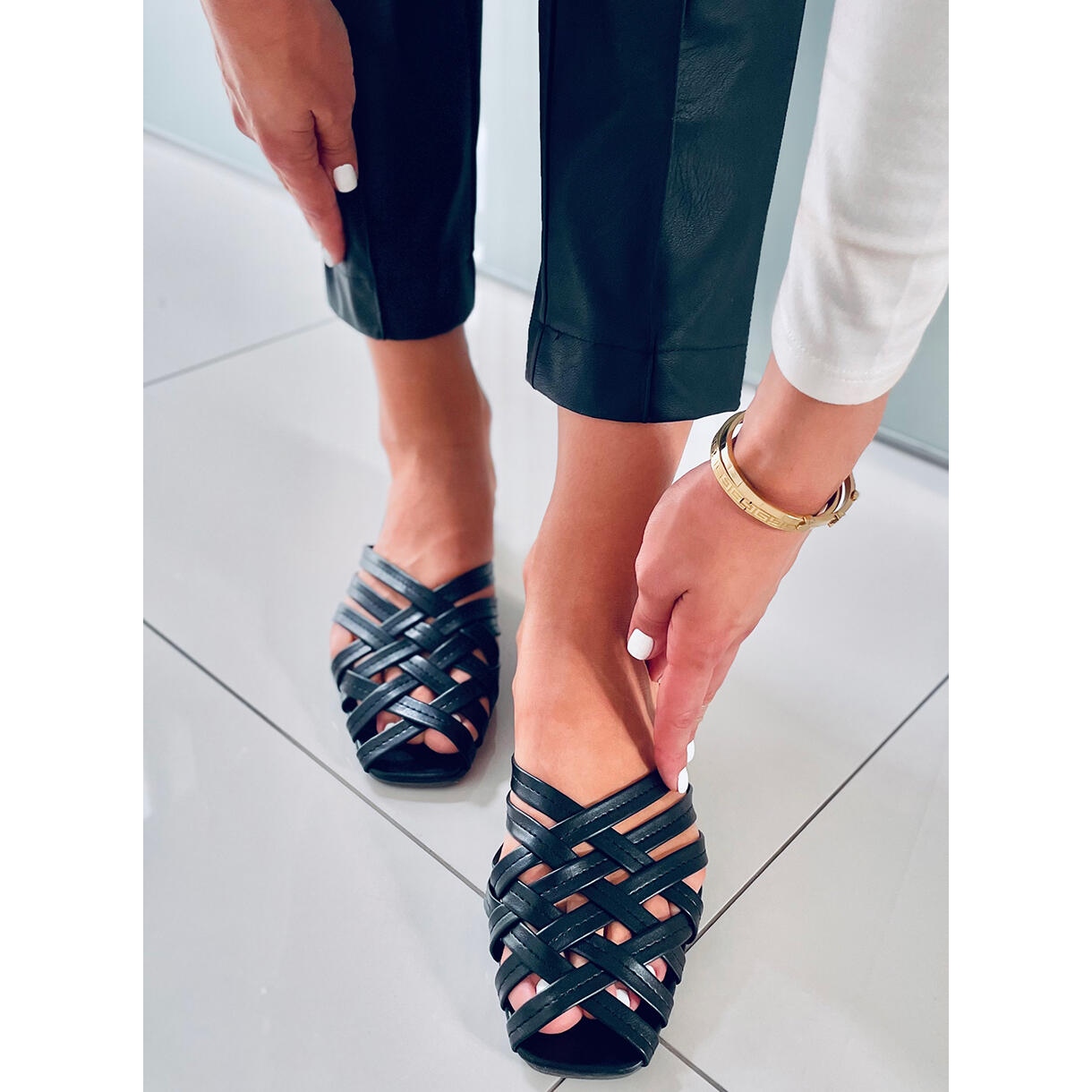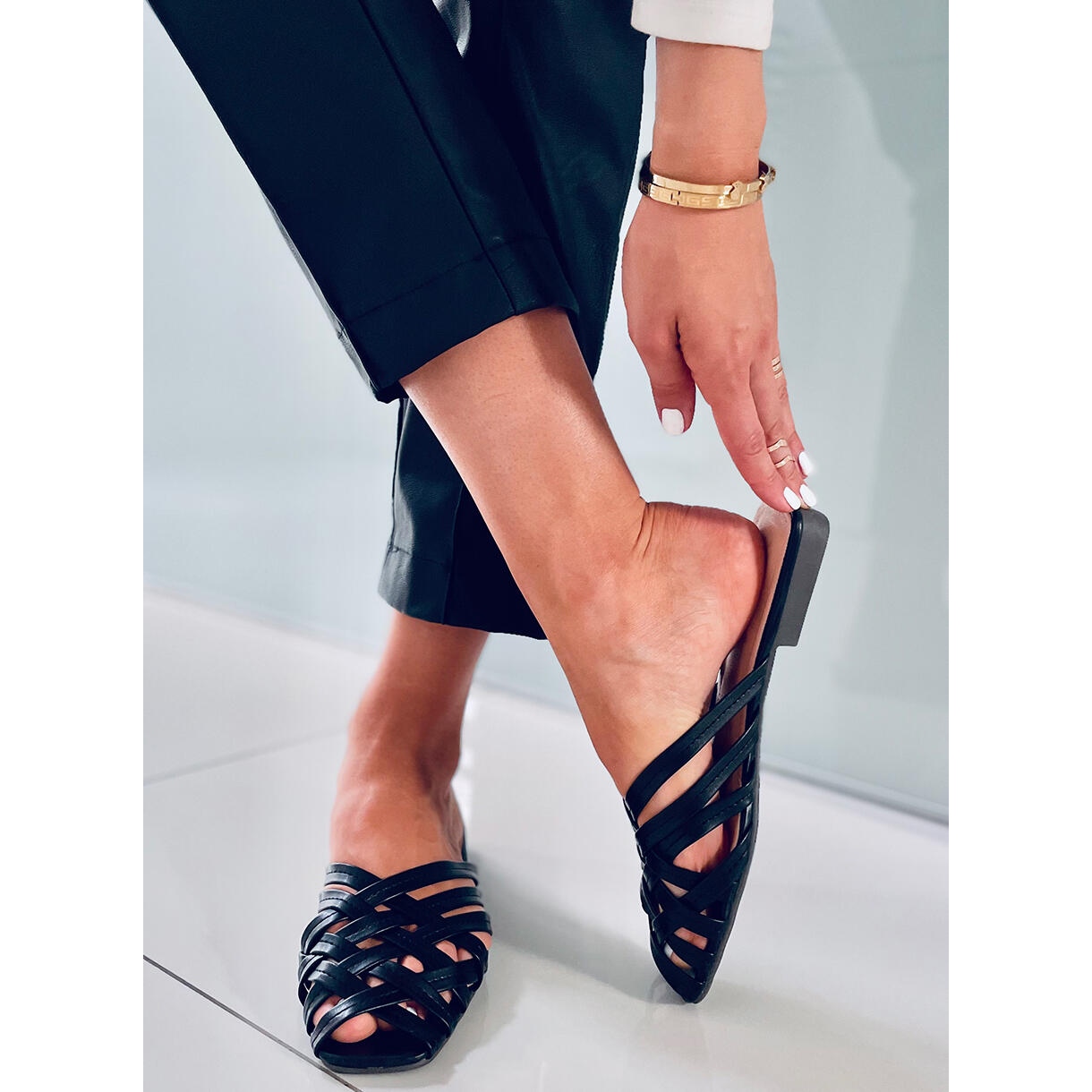 Découvrez les tongs tissées pour femme Loretta Black, qui complètent parfaitement le style estival ! Ces tongs élégantes de couleur noire classique sont un incontournable pour toute femme qui veut avoir un look à la mode et confortable. Fabriqués en cuir écologique de haute qualité, ils offrent non seulement du style, mais aussi un confort de port au quotidien.