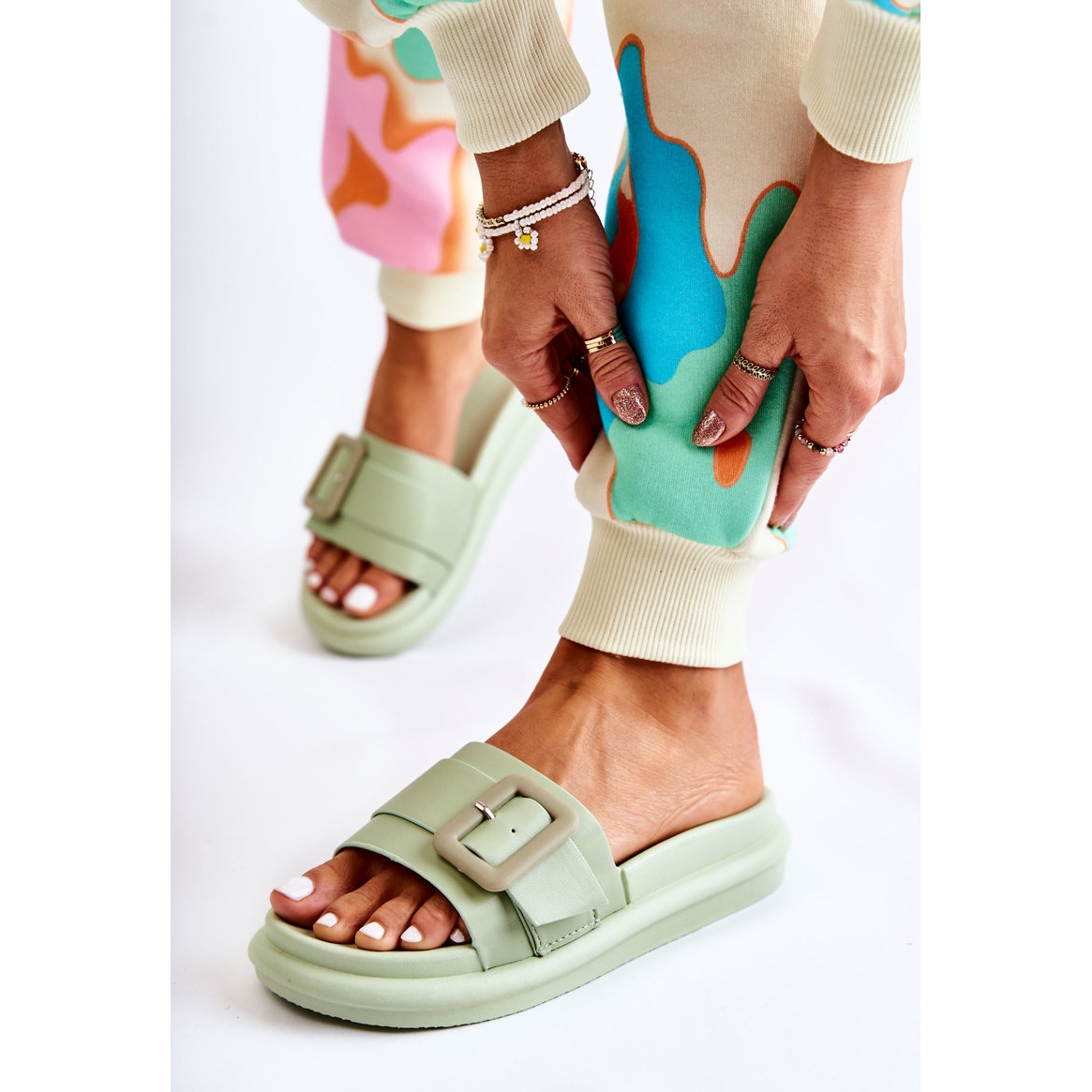 Nous vous présentons les tongs pour femmes à boucle d'une belle couleur verte de la marque Devia. Ces tongs classiques et à la mode sont soigneusement fabriquées en cuir écologique de haute qualité, ce qui garantit confort de port et respect de l'environnement. La semelle intérieure et la semelle sont en caoutchouc, ce qui augmente encore leur confort, parfait pour les journées d'été.
