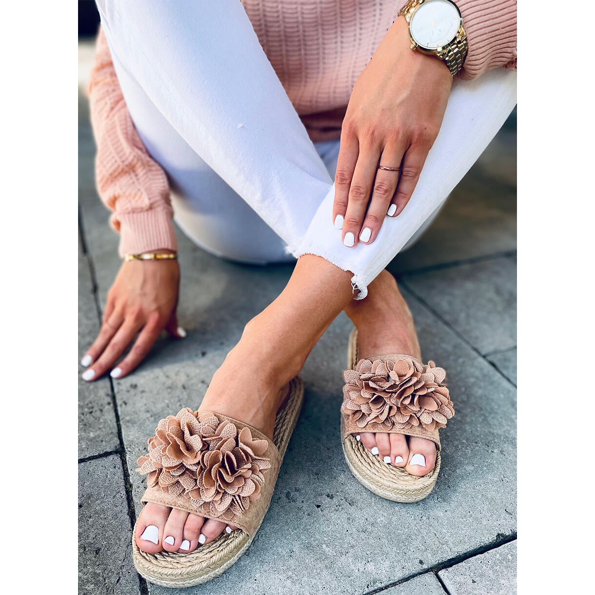 Détails: Chaussons fiesta fleuris Primrose Camel beige